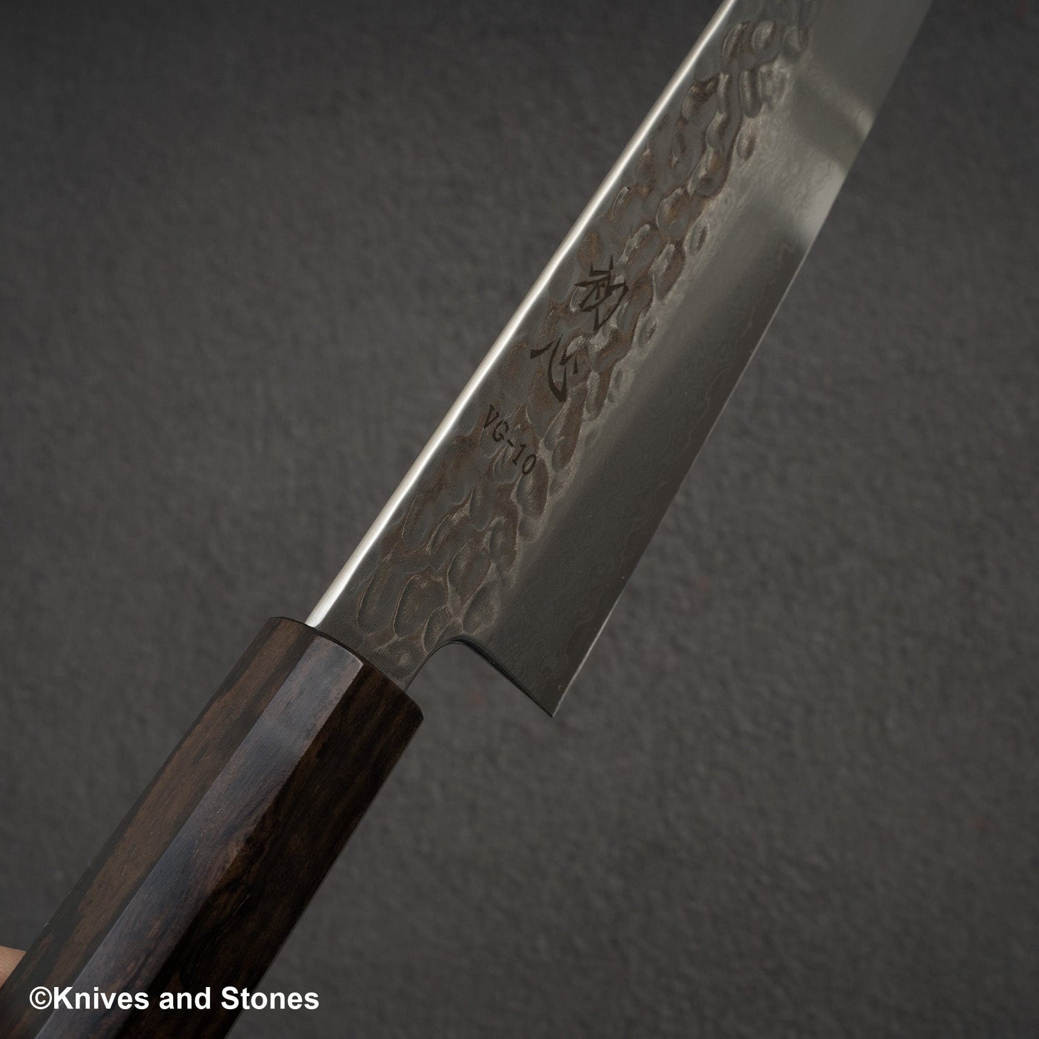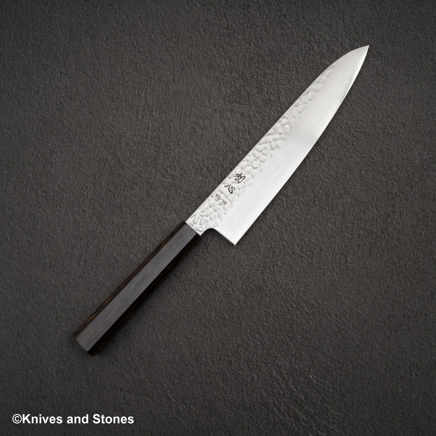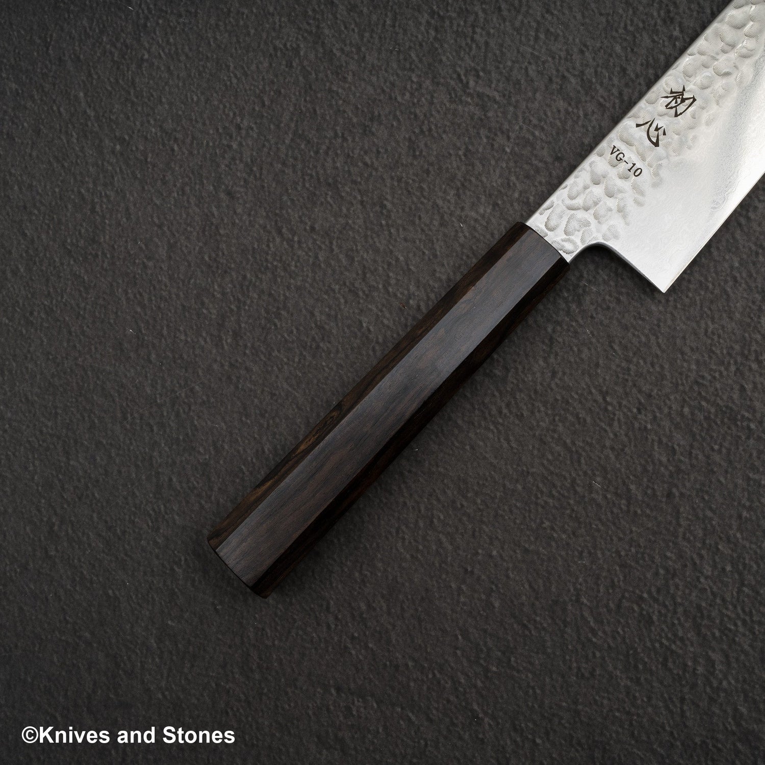 Hatsukokoro Hayabusa VG10 Damascus Tsuchime Gyuto 210mm Ebony Handle