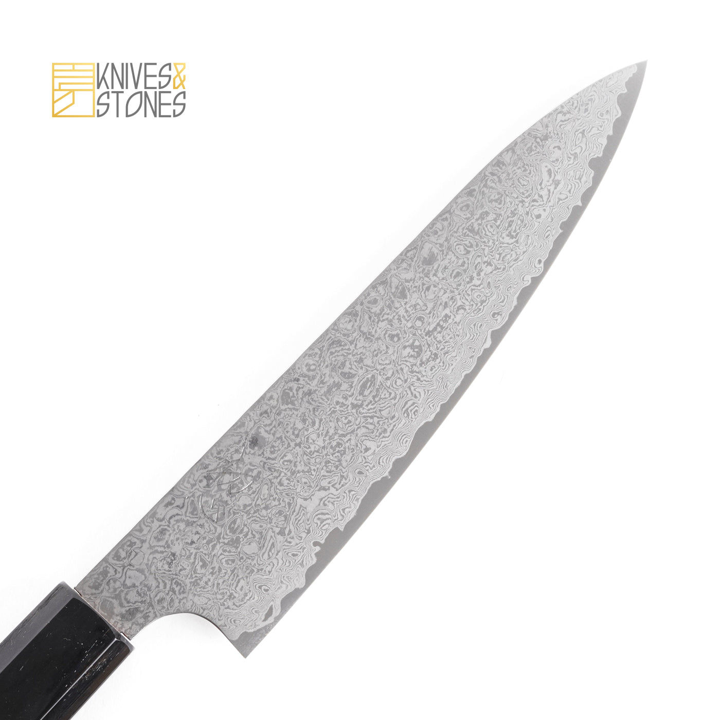 Hatsukokoro Ginsan Damascus Tsuchime Petty 150mm with Teak Wood Handle, by Yoshihiro Yauji