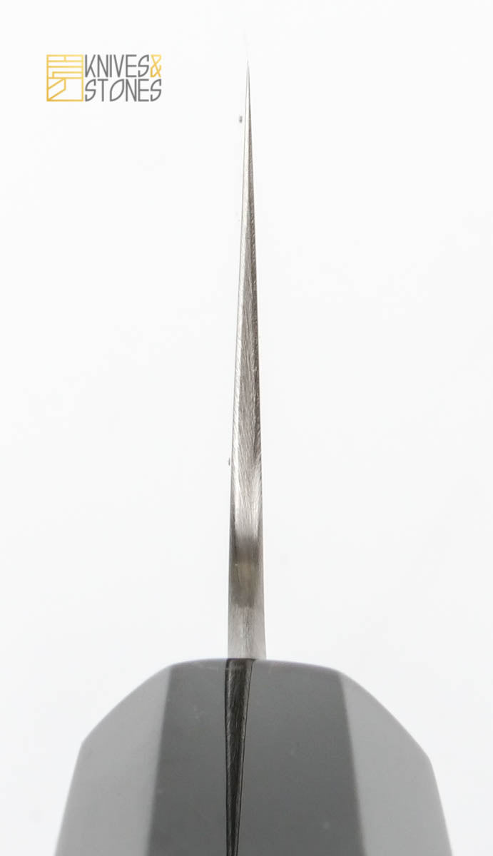 The ZDP-189 blade is forged with Nickel damascus stainless steel and mirror polished, along with the rounded choil and spine, super thin behind the edge, it is truely a master-piece from Master Hanaki Nobuo.