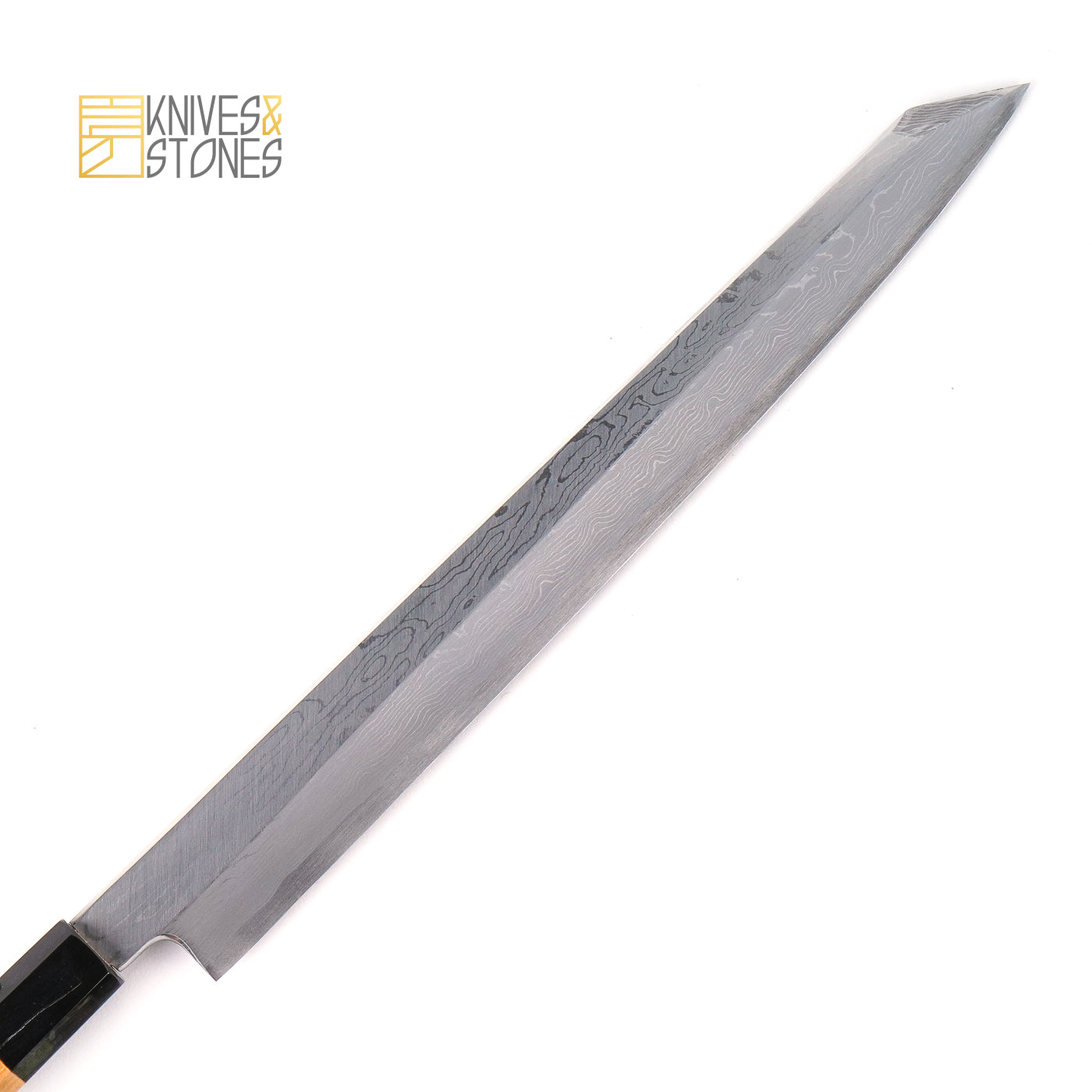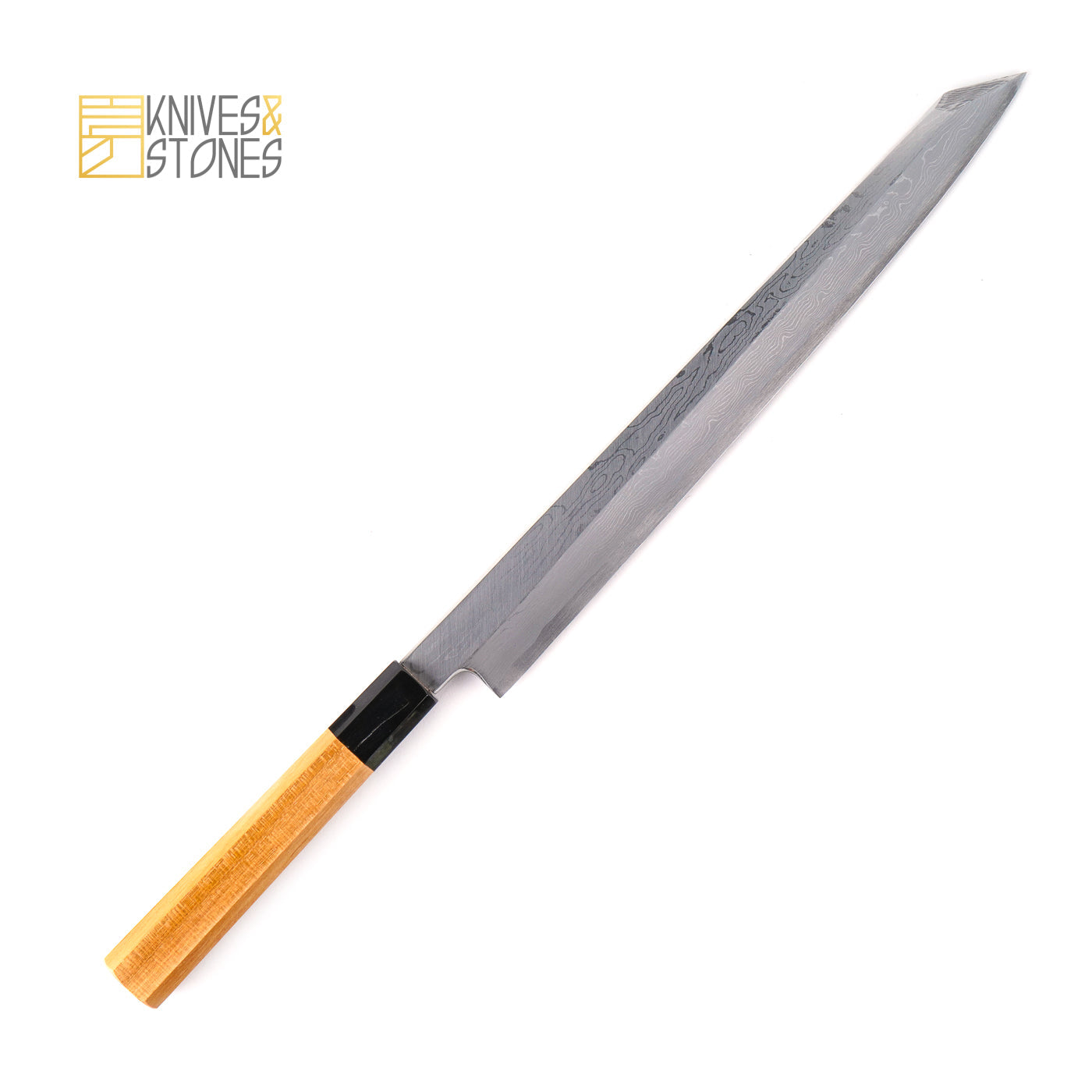 Nakagawa Blue 1 Damascus Kirisuke Yanagiba 270/ 300/ 330 mm - 270mm is backordered and will ship as soon as it is back in stock.
