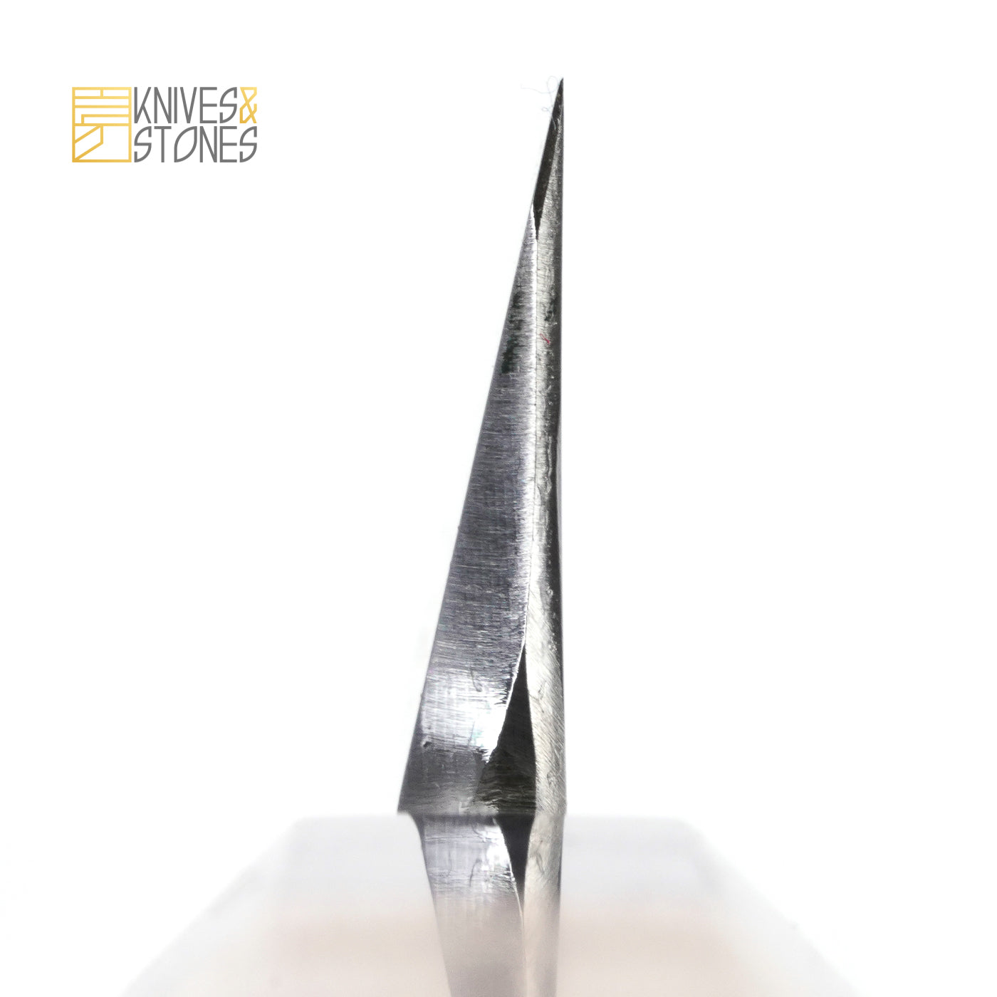 After the success of bringing in Nakagawa-san's popular wide-bevel Ginsan line, we are now proud to offer his professional single bevel line - Blue1 yaganiba with beautifully finished spine and choil.