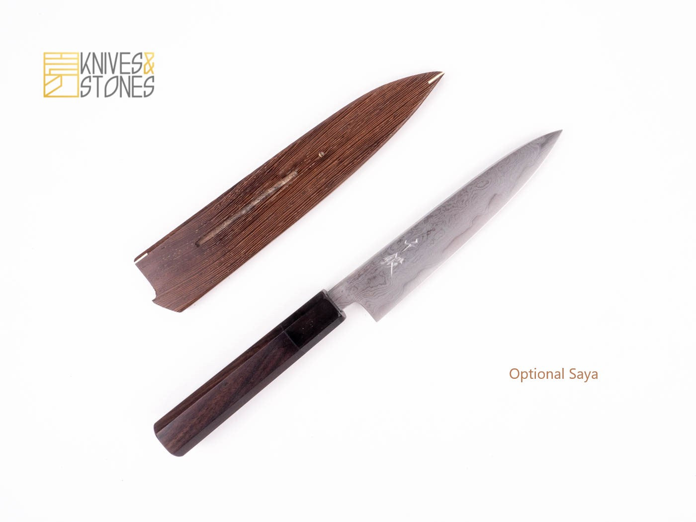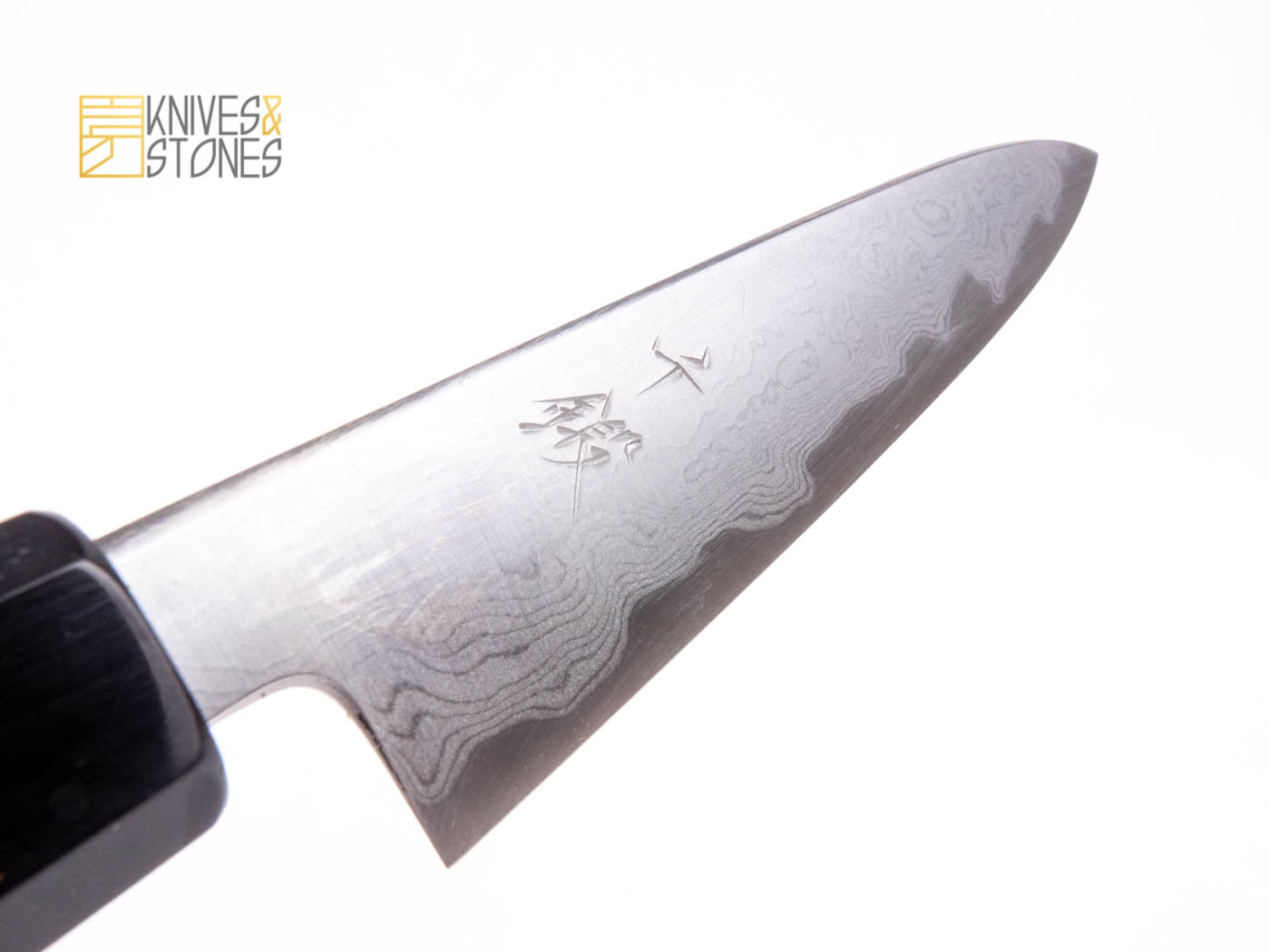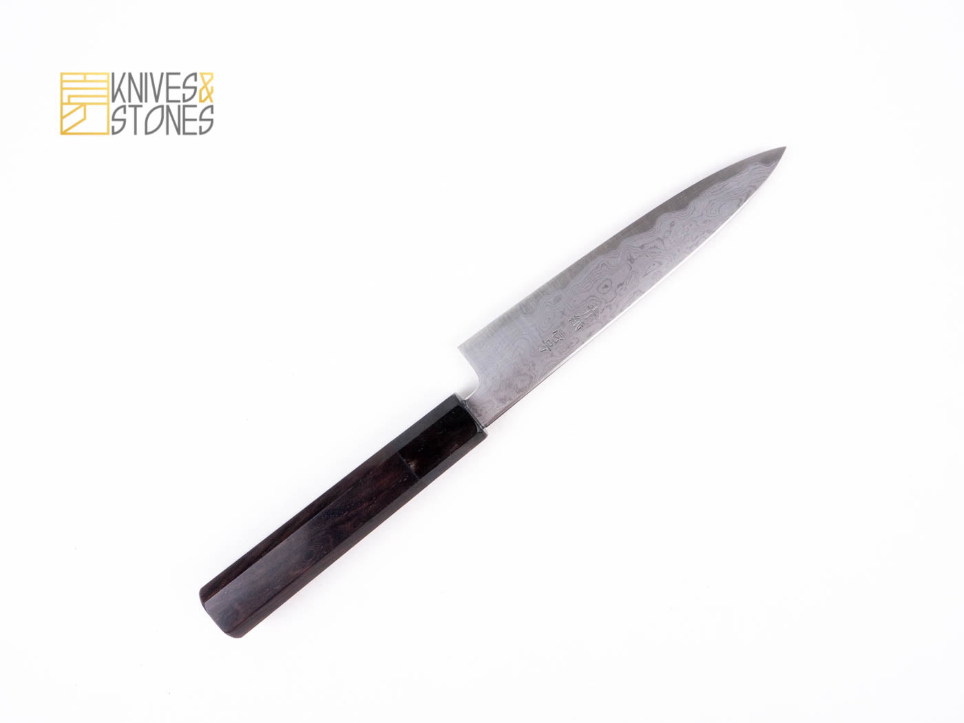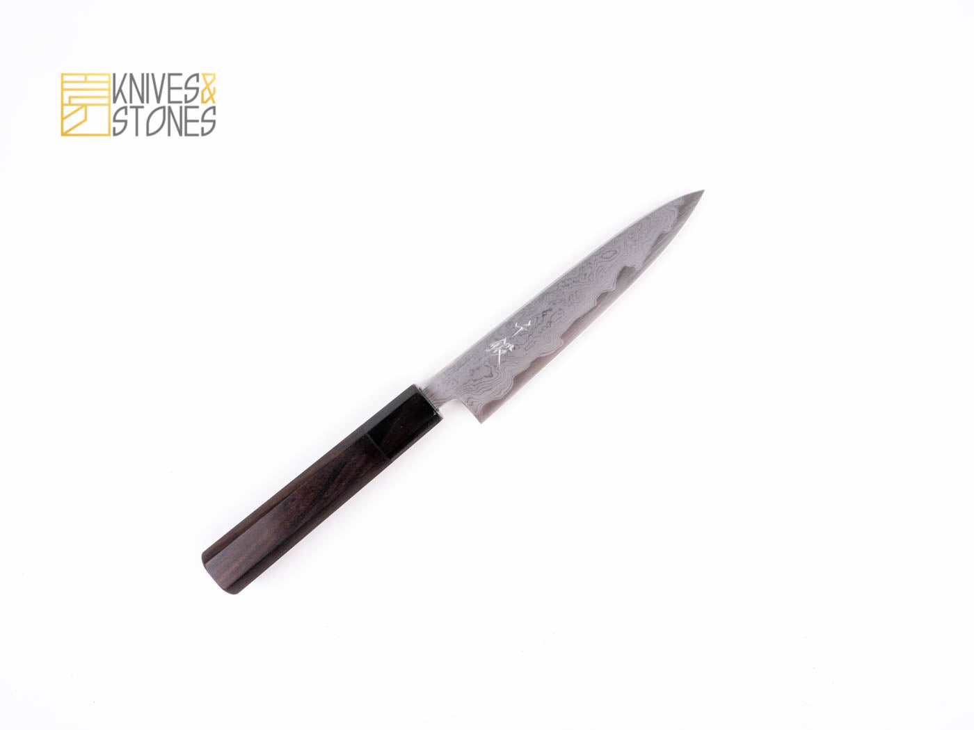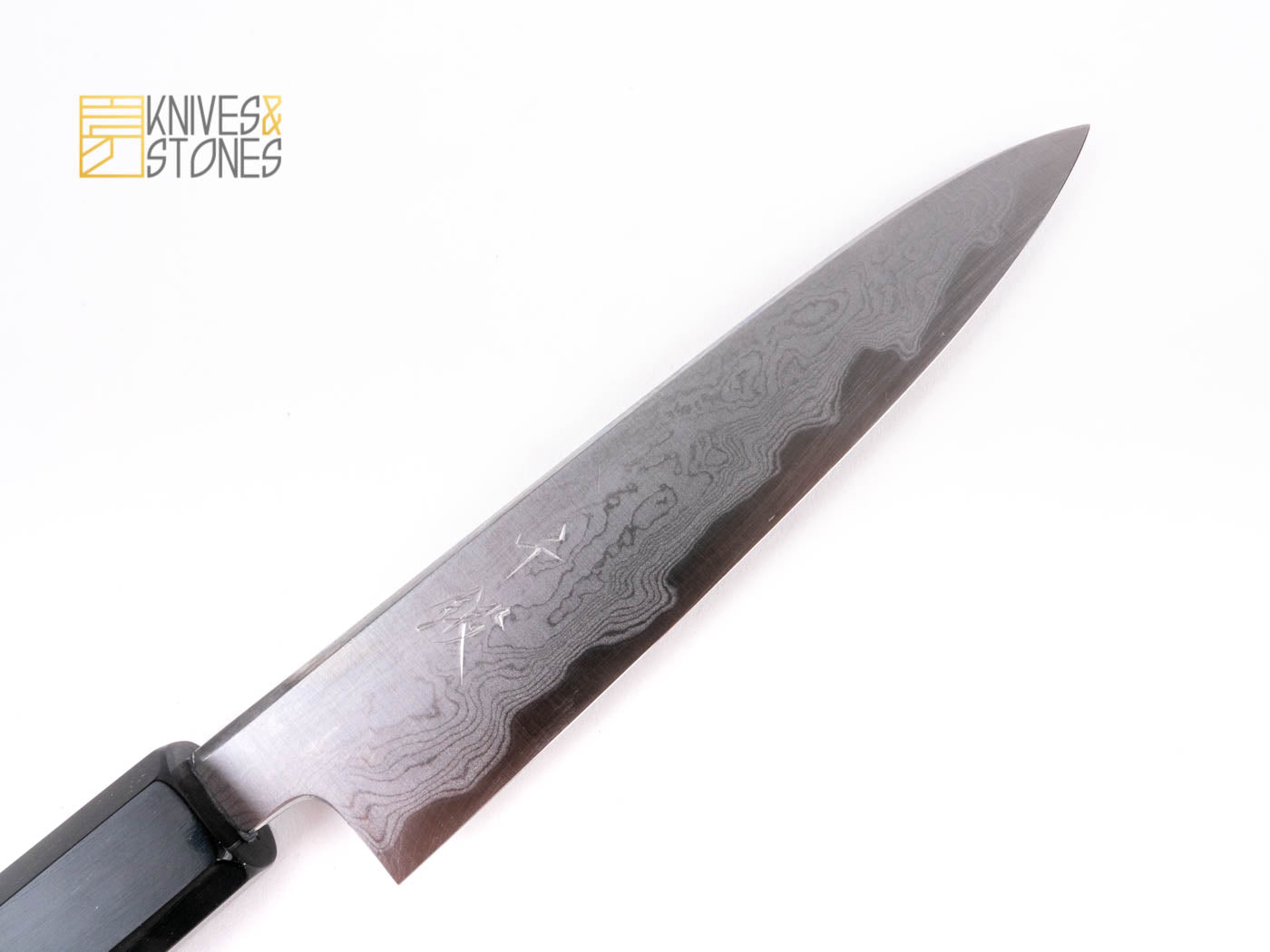 Sentan Blue 1 Damascus Petty 150mm with K&S Ebony handle, by Yoshikazu Tanaka