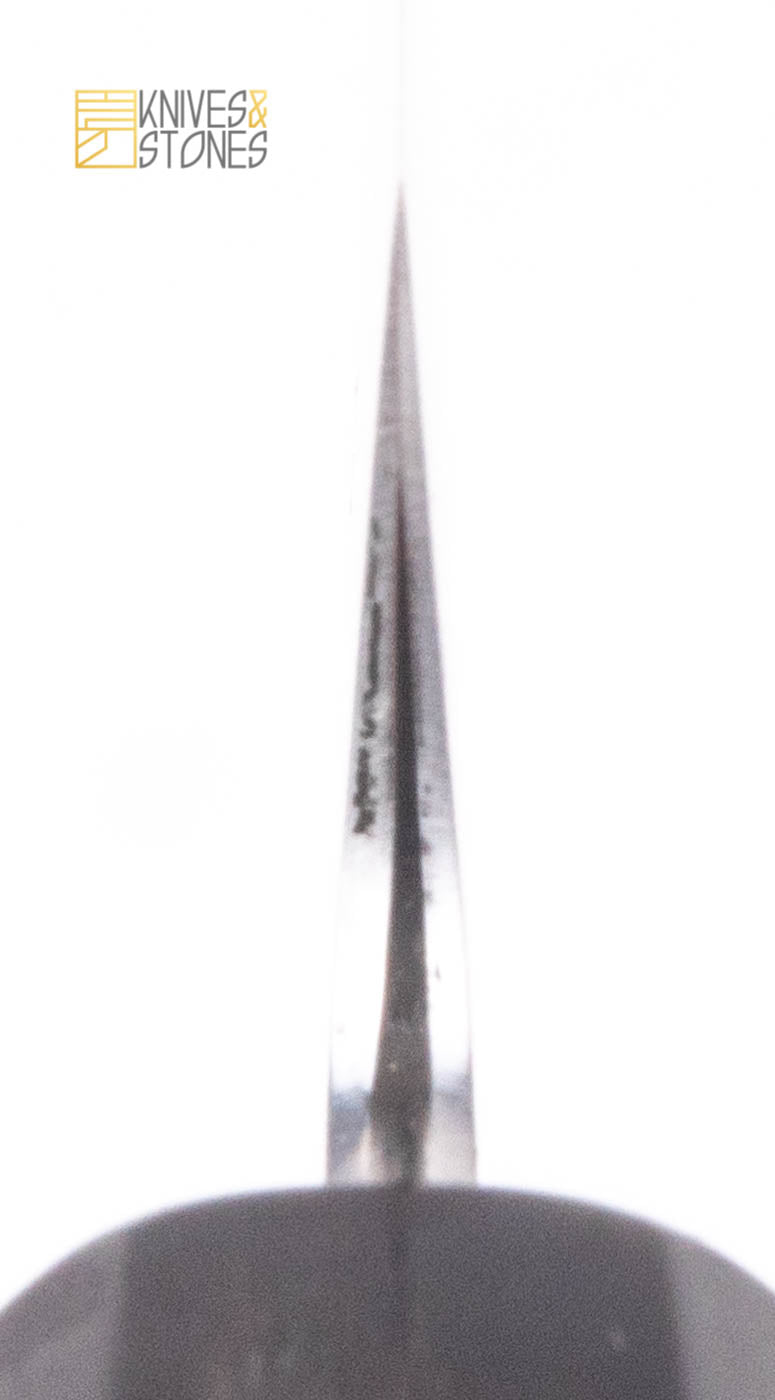 With Konosuke Fujiyama FM as his most famous works, Tanaka-san is well known for his excellent heat treatment and his forging skills. Knives made by him are featured with a wavier cladding line between the hagane and jigane, and often has more core steel exposed.