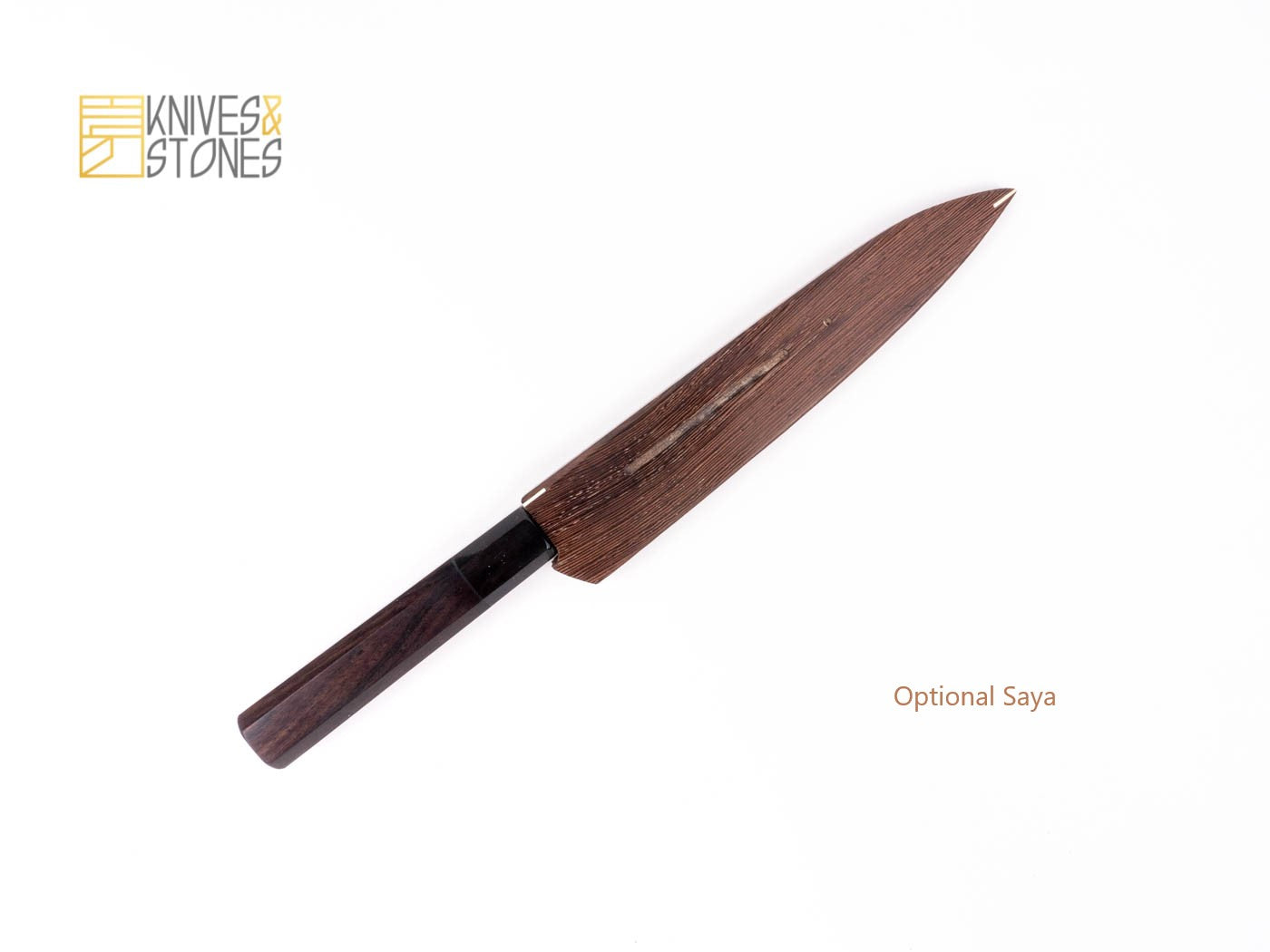 Through our connections, K&S was able to collaborate with master Tanaka to offer a special Yoshikazu Tanaka made knives under the K&S house brand of Sentan (千锻). The highlight of the offering is that we are pairing these beautiful blades with our K&S custom handles, and we even have get Gyuto in our K&S custom profile, which is significantly taller and longer than a standard Sakai profile.