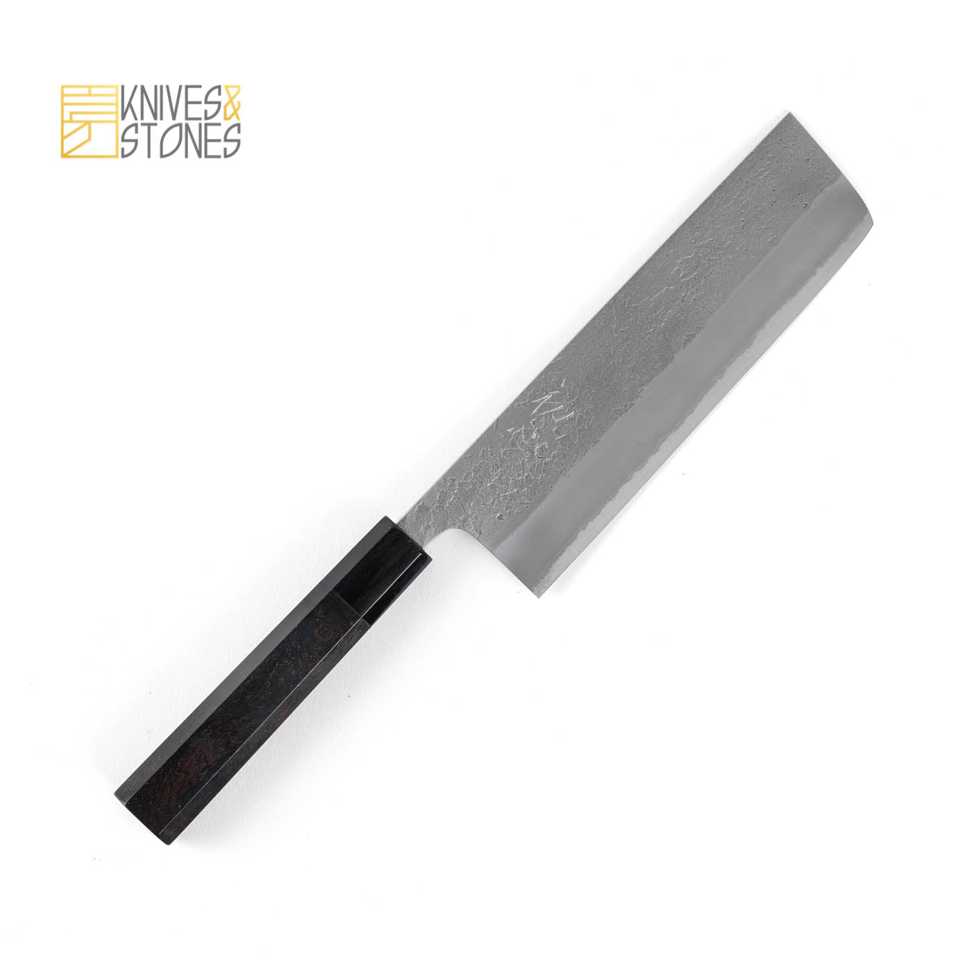 Hatsukokoro White 2 Nashiji Finish Stainless Clad Nakiri 165mm, with K&S Ebony Handle, by Yoshikane