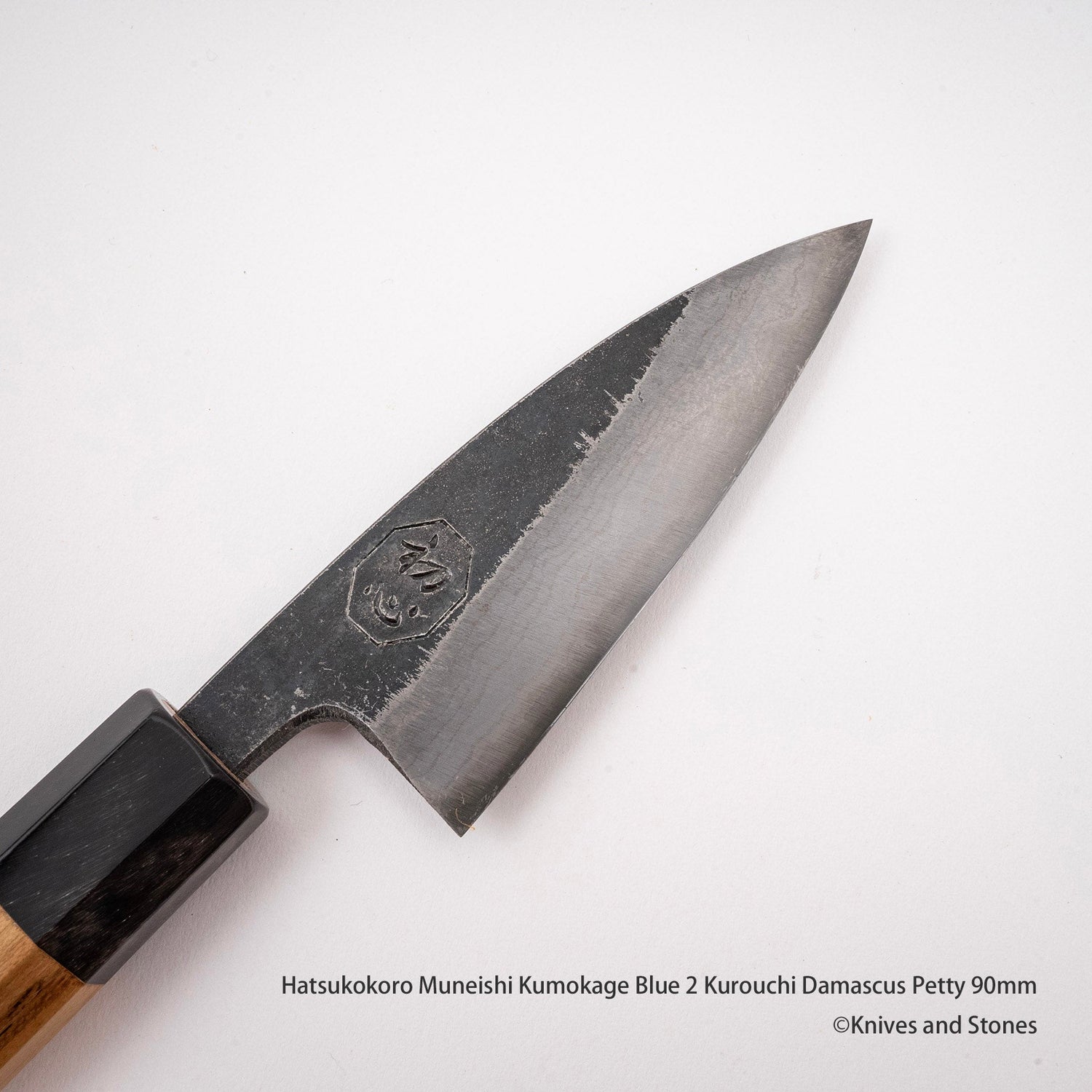 Hatsukokoro Muneishi Kumokage Blue 2 Kurouchi Damascus Petty 90mm