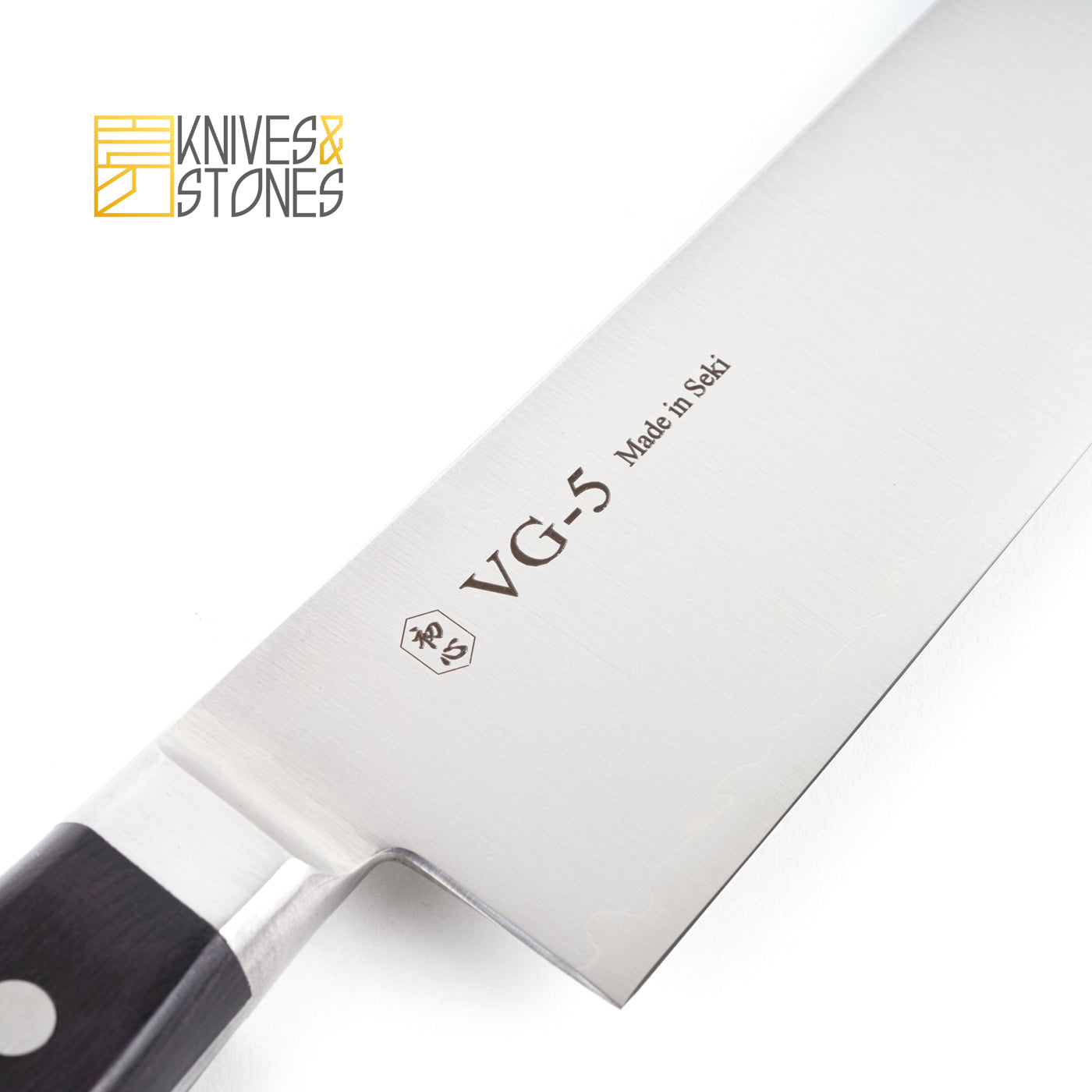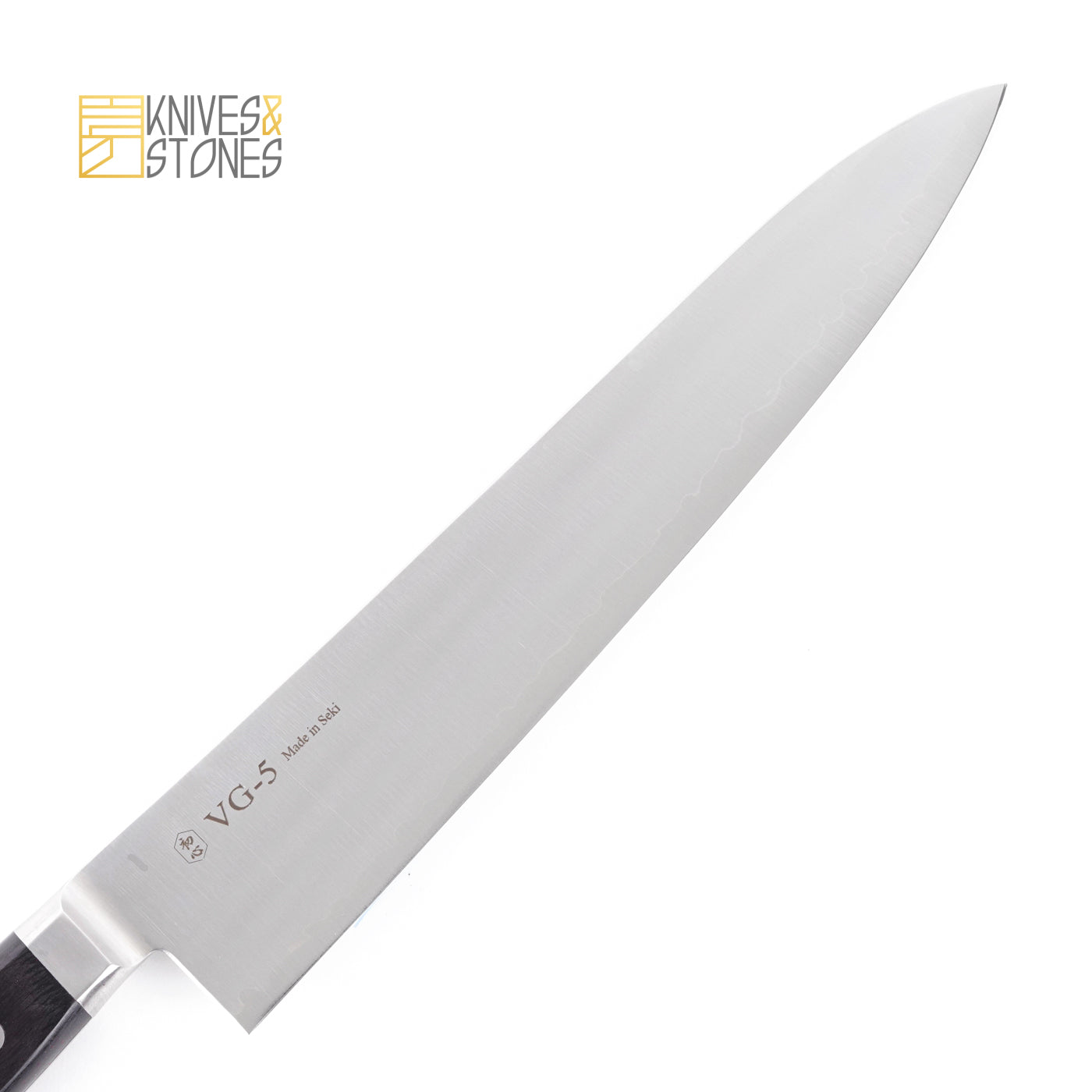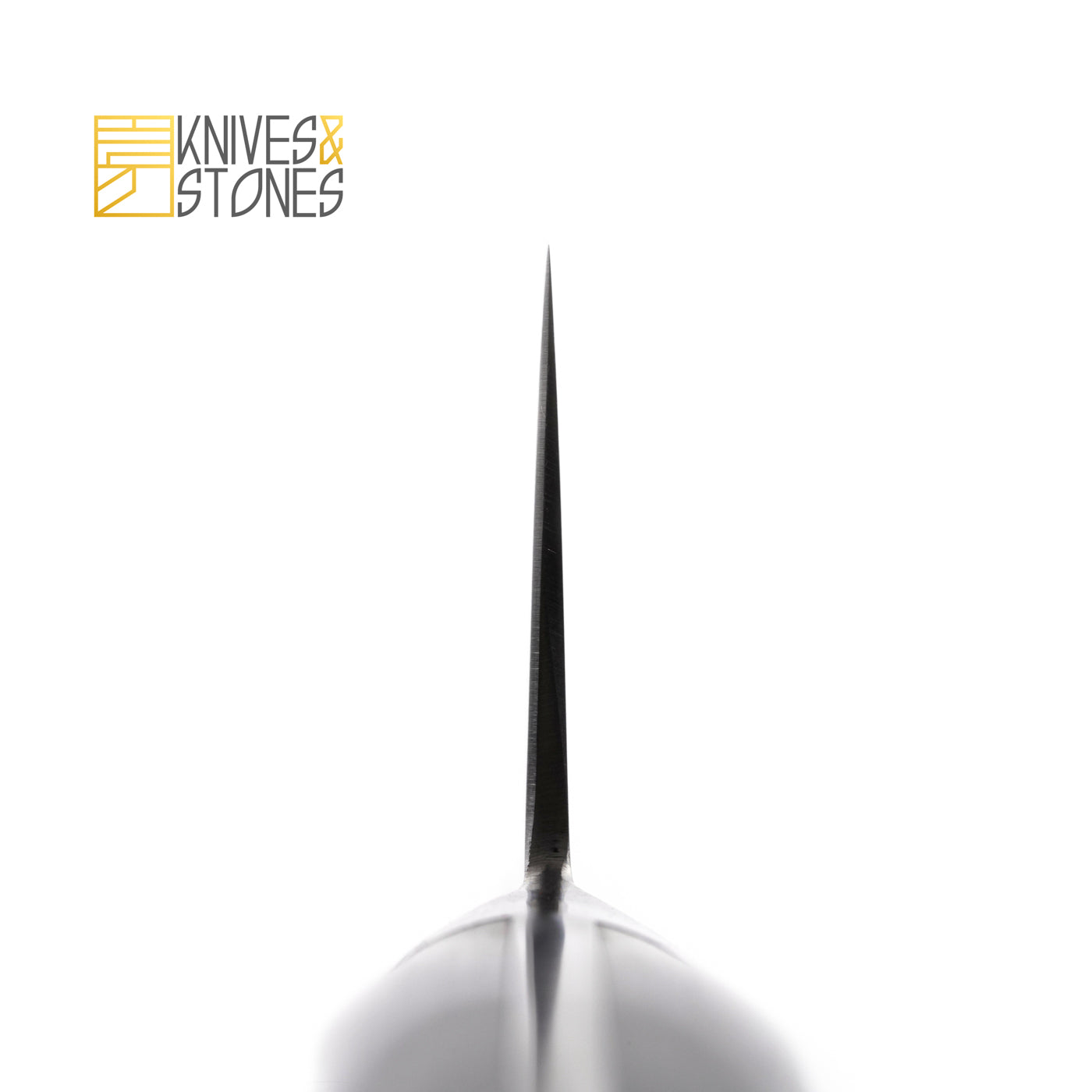 VG5 stainless steel Gyuto 240mm from Hatsukokoro, with Pakka wood western style full tang handle.