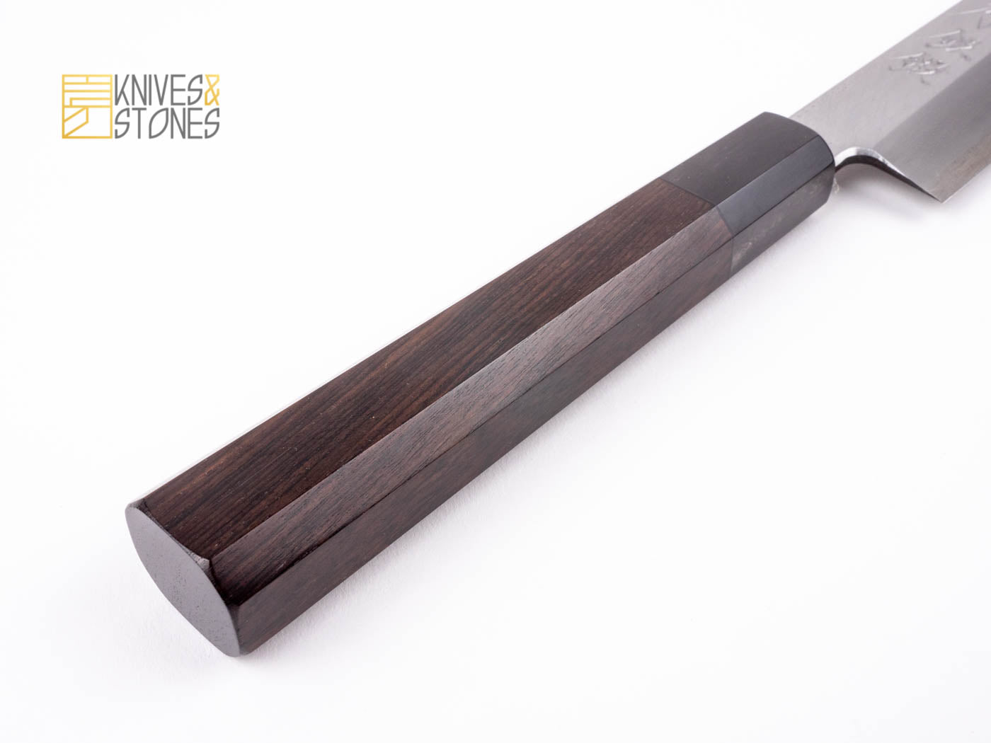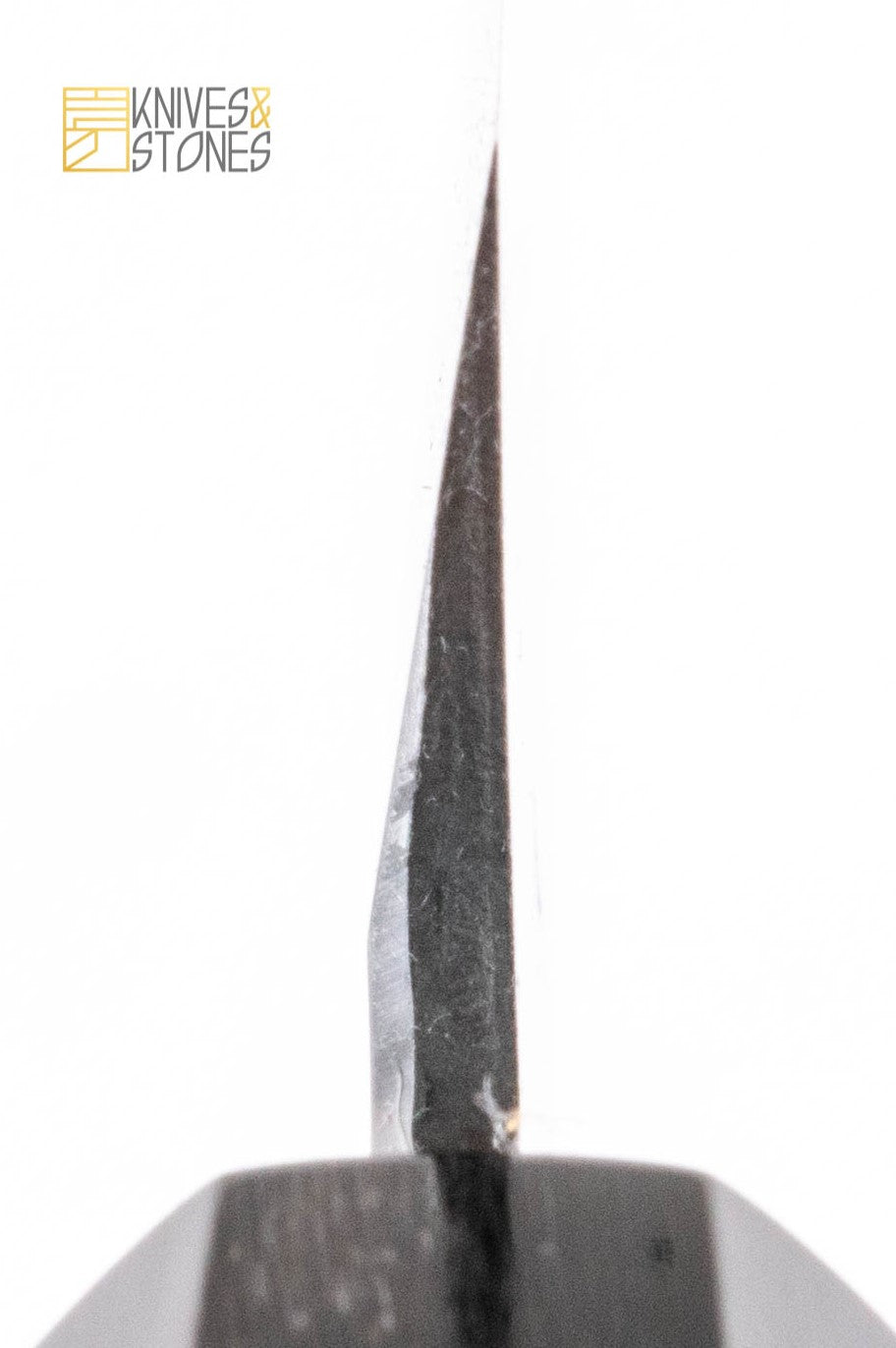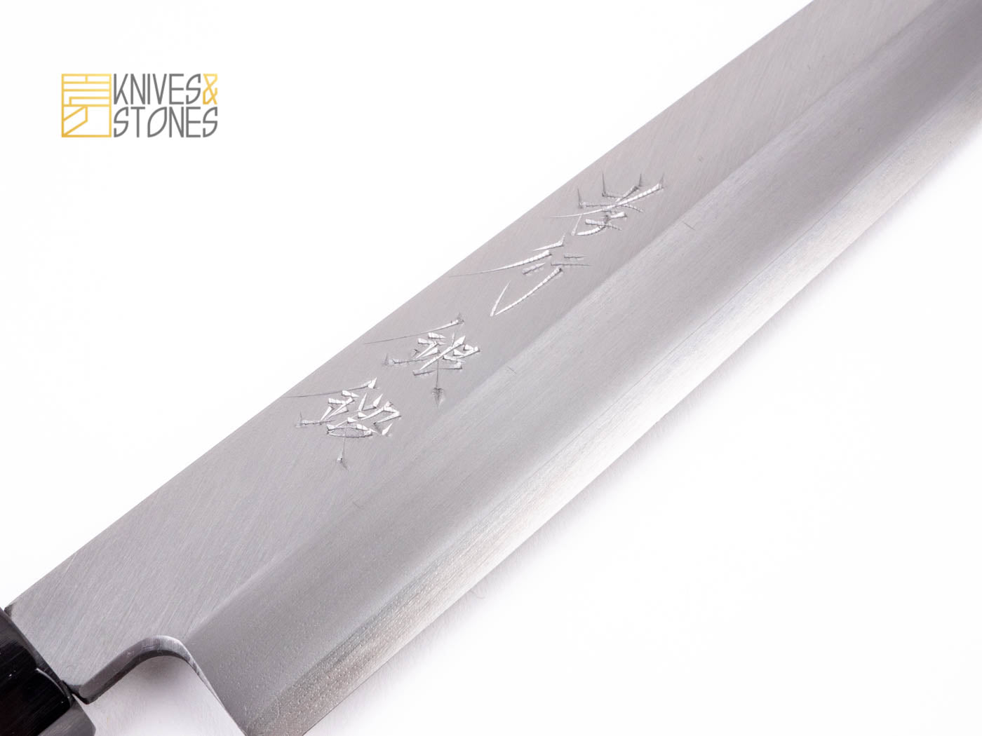 The Gintan (銀鍛) is a K&S special order from Takayuki that has a improved overall package, such as a ebony handle and hand engraved kanji, yet maintains a very competitive pricing.