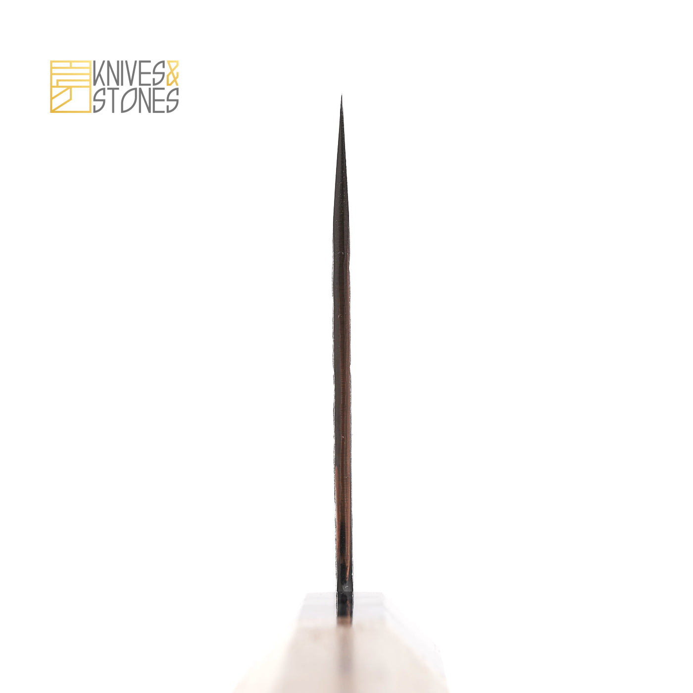 The Kurosaki Chinese cleaver is a very unique knife. Just like all the other Kurosaki knives, this is a stainless cladded knife with the super hard Aogami Super (Blue Super, AS) carbon core.