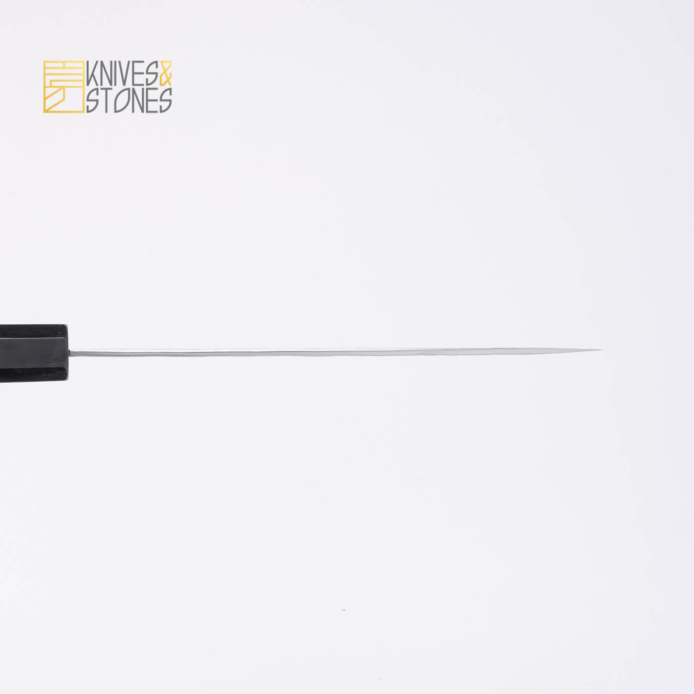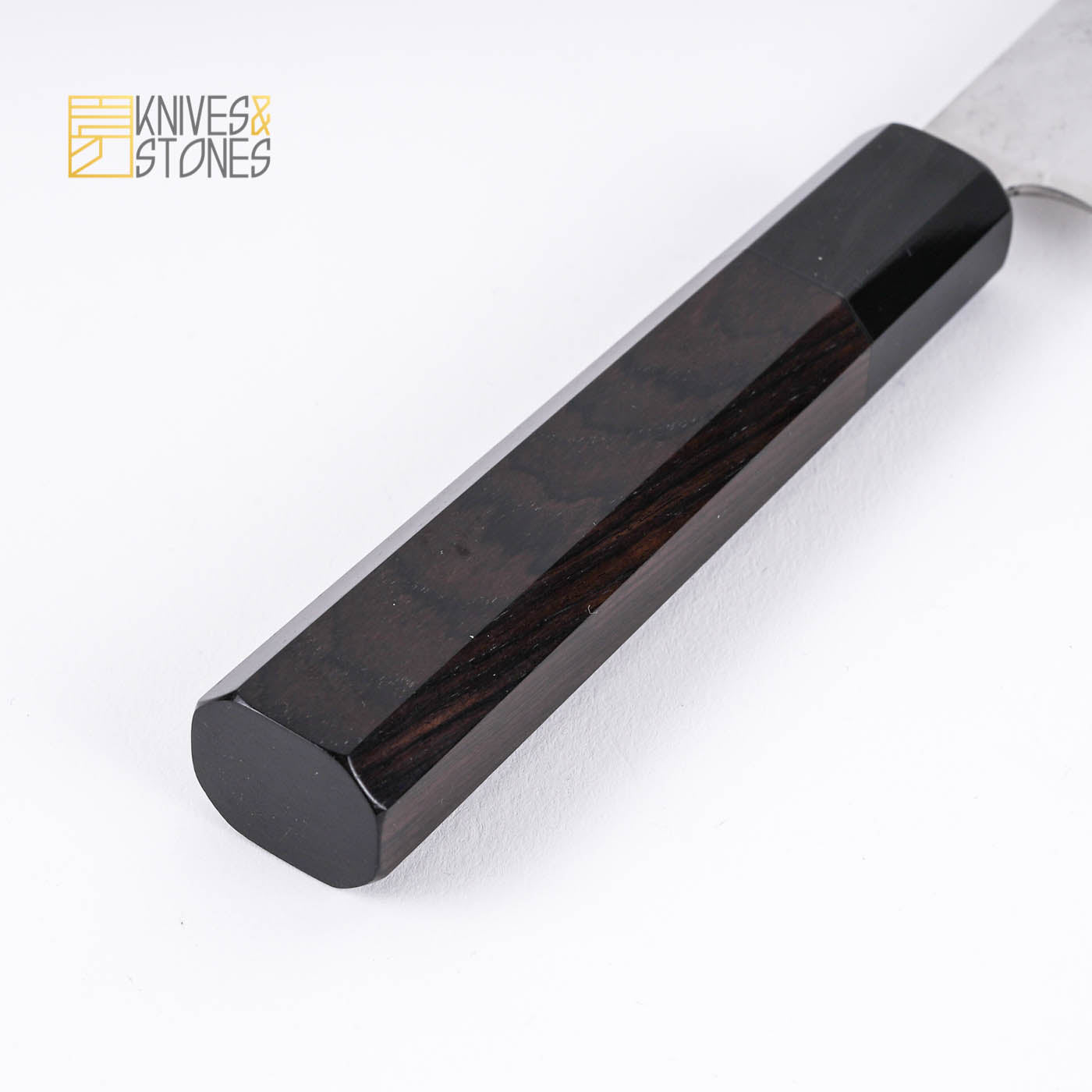 Kurosaki Senko (閃光) SG2/R2 Petty 150mm, with K&S Ebony handle is backordered and will ship as soon as it is back in stock.