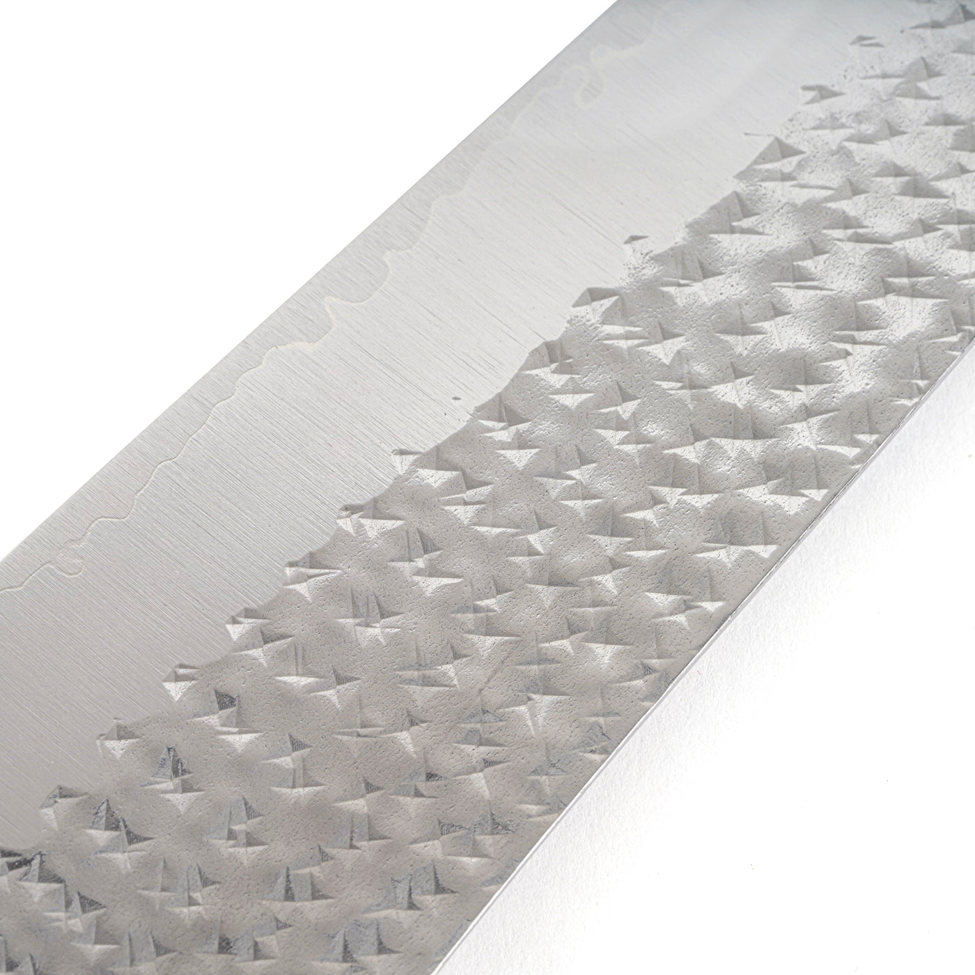 The dazzling hammer imprints on the polished stainless cladding resembles diamond pattern and is where the Senko (translated as "shine") comes from.