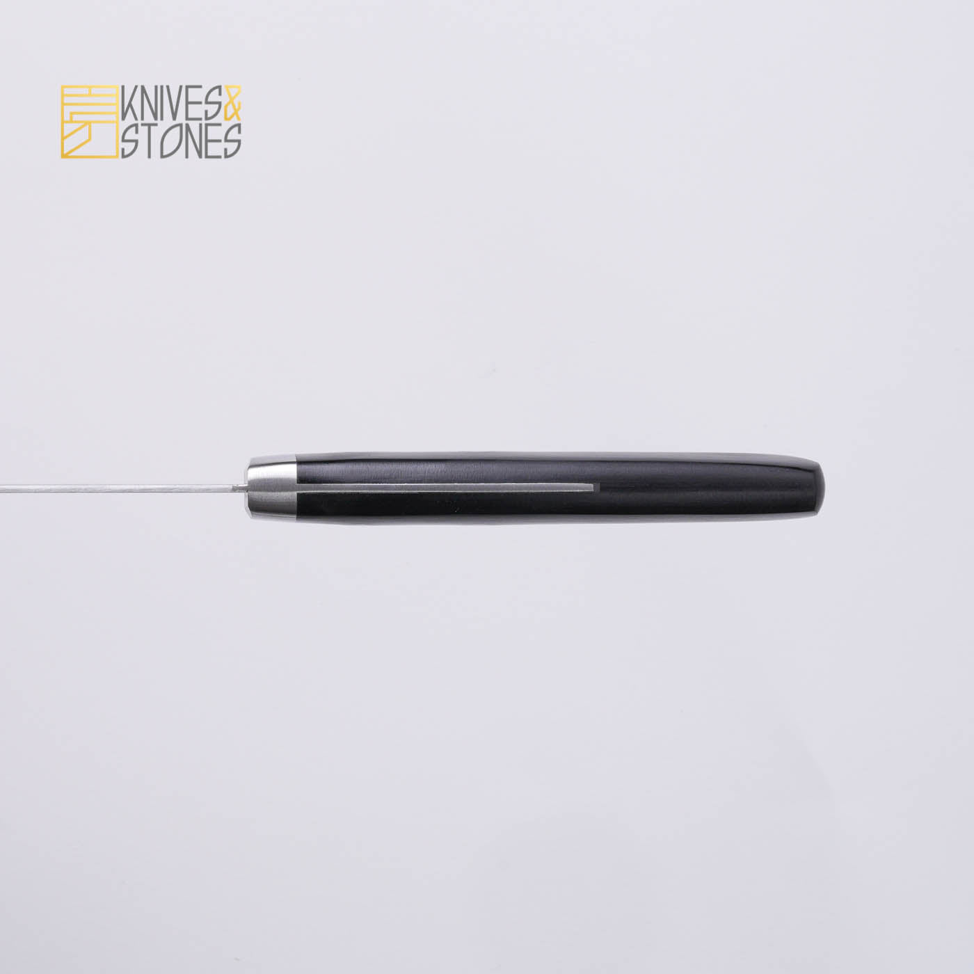 Cladded in soft stainless steel, the knife has VG10 steel core which is the most popular steel in Japanese kitchen. With thin grind behind the edge, the Masutani is more like a laser to allow you can cut through food effortlessly.