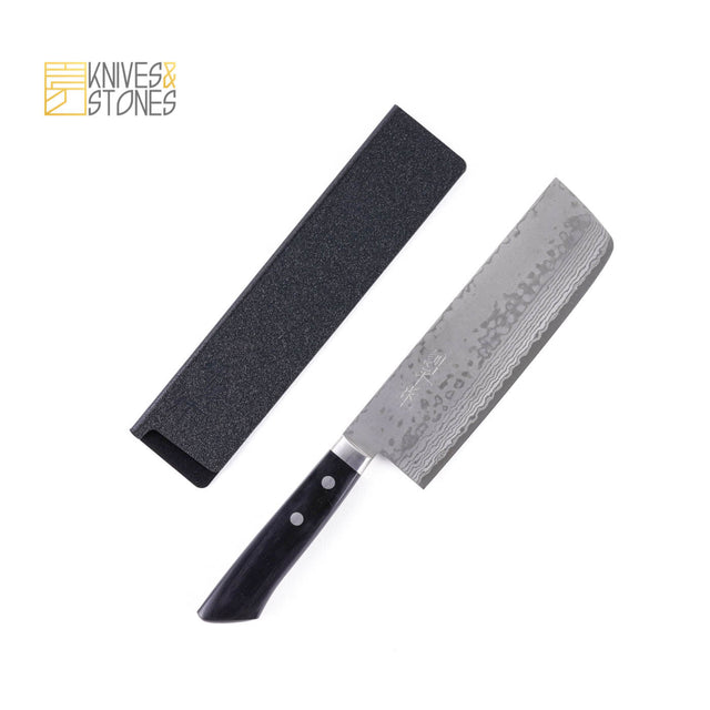 Masutani VG10 Damascus Nakiri 165mm Western Handle with FREE premium knife guard - Black is backordered and will ship as soon as it is back in stock.