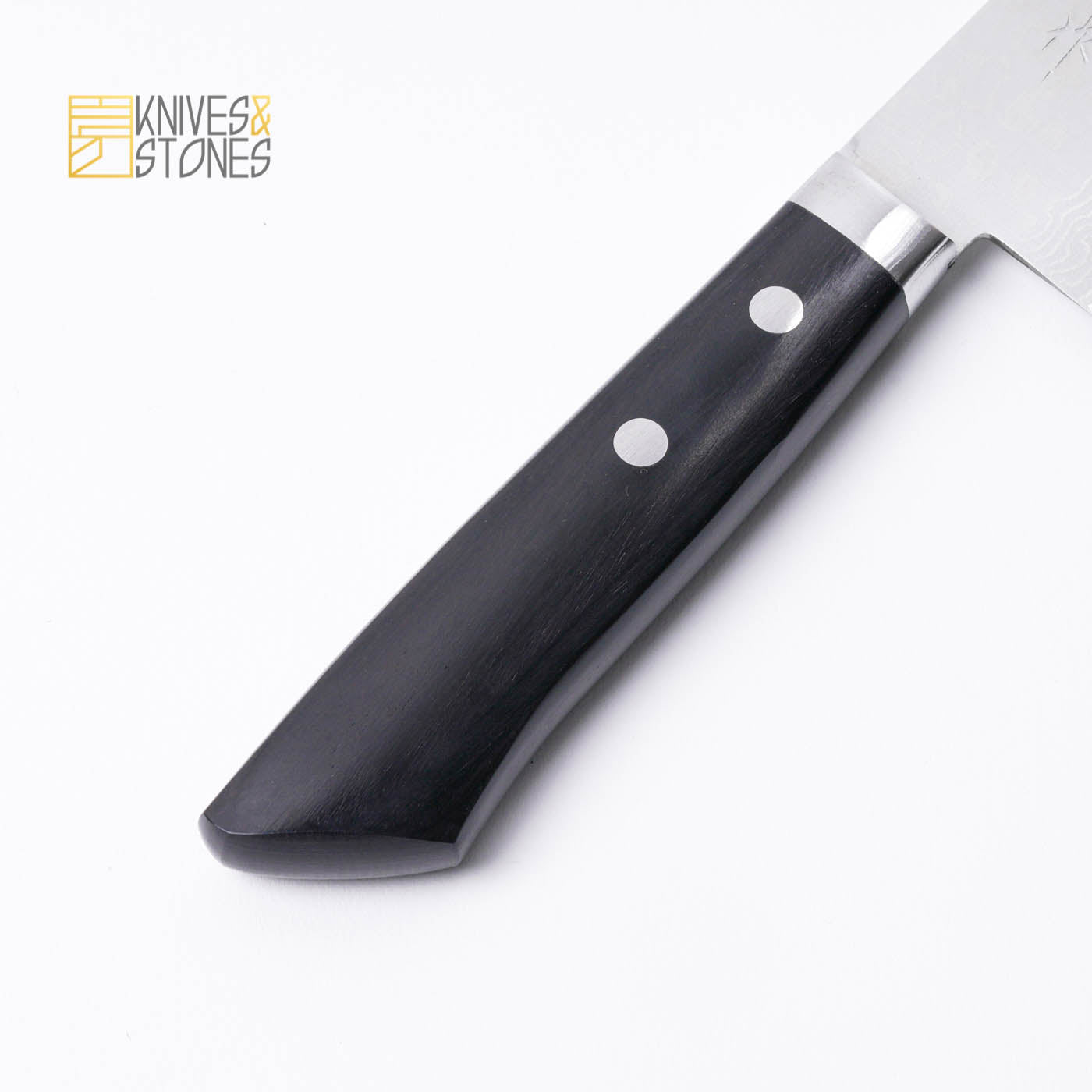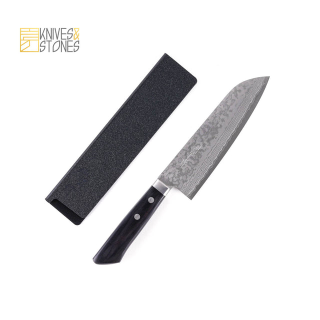 Masutani VG10 Damascus Santoku 170mm Western Handle with FREE premium knife guard - Black is backordered and will ship as soon as it is back in stock.