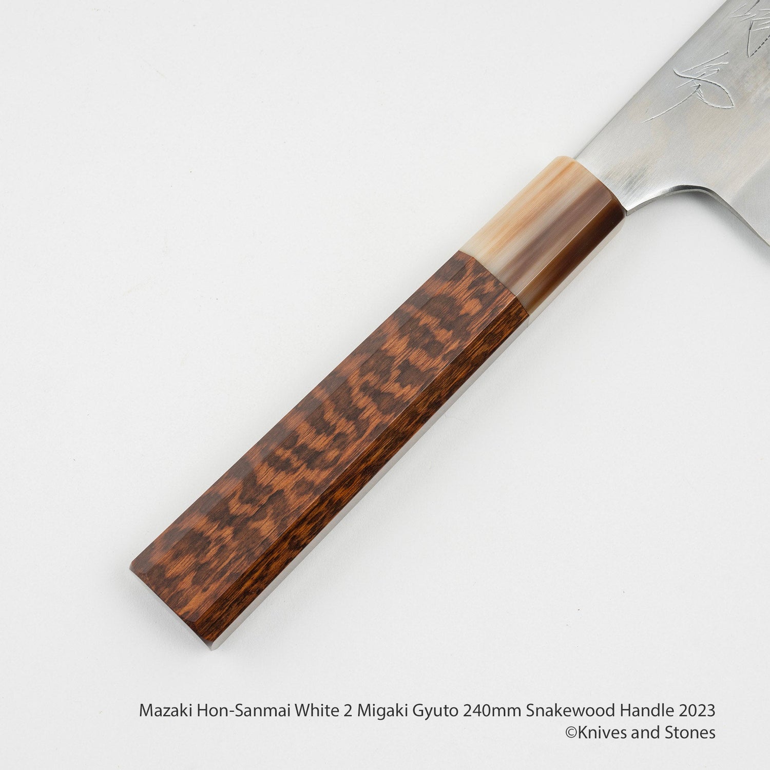 Mazaki Hon-Sanmai White 2 Gyuto 240mm Snakewood Handle 2023 Version
