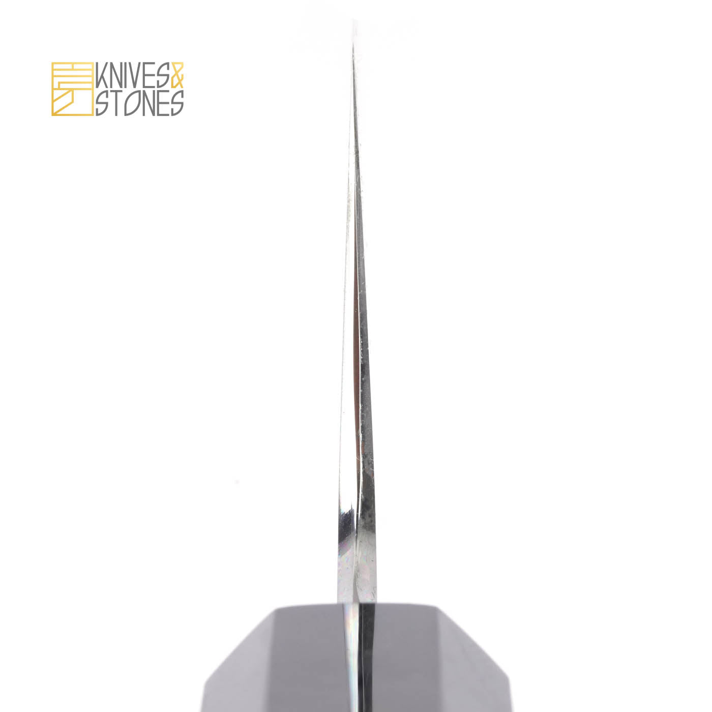 I think 'refined' is the best word to describe Naohito's work: while featuring proven cutting performance, his knife has some of the best finishes out there. The spine is nicely chamfered, choil is well polished. By engraving his name Naohito on to the knivves, you can tell that he must be really proud of his work, and I trust you will enjoy his knife as well.