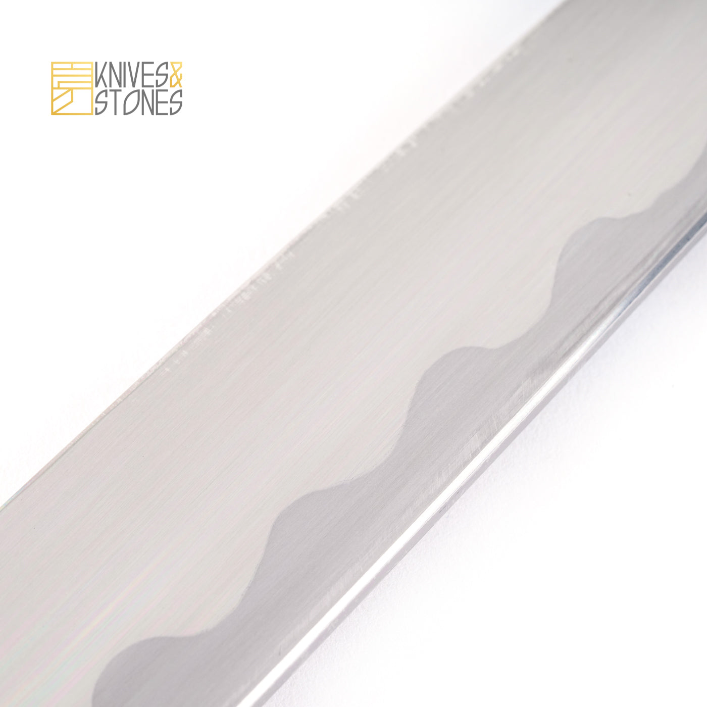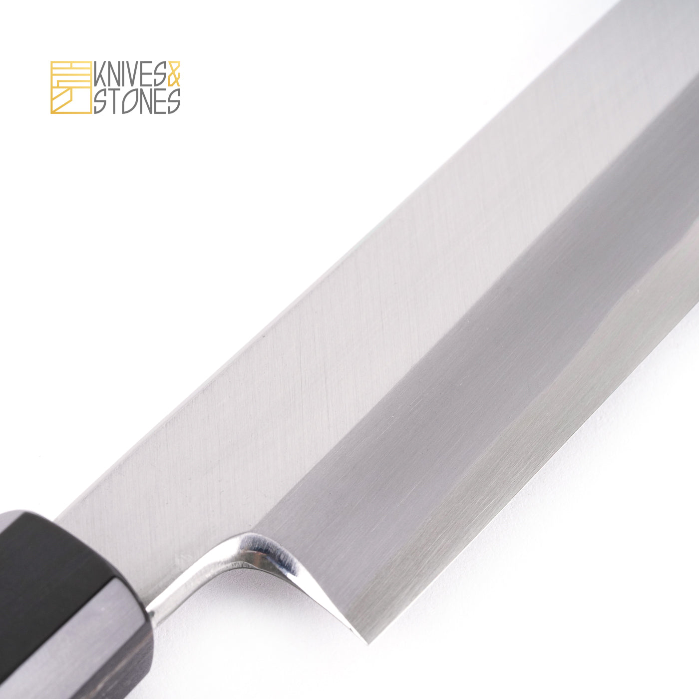 After the success of bringing in Nakagawa-san's popular wide-bevel Ginsan line, we are now proud to offer his professional single bevel line - Blue1 yaganiba with beautifully finished spine and choil.
