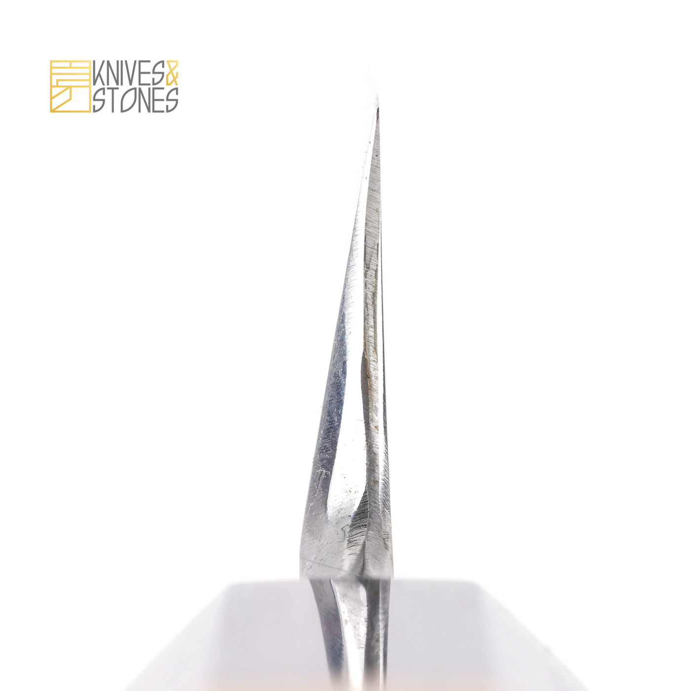 After the success of bringing in Nakagawa-san's popular wide-bevel Ginsan line, we are now proud to offer his professional single bevel line - Blue1 yaganiba with beautifully finished spine and choil.