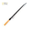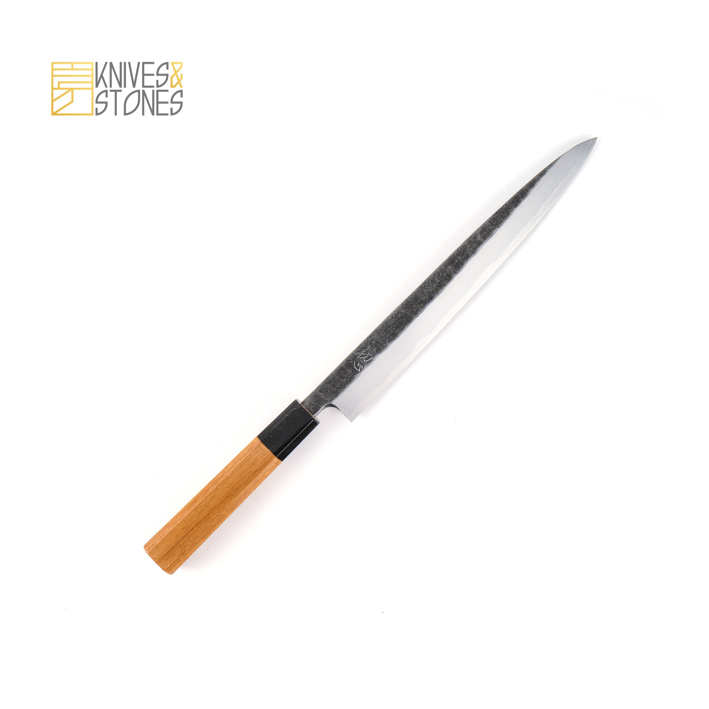 Blue 2 Yanagiba with Kurochi Finish and Teak wood handle, by Myojin Riki.