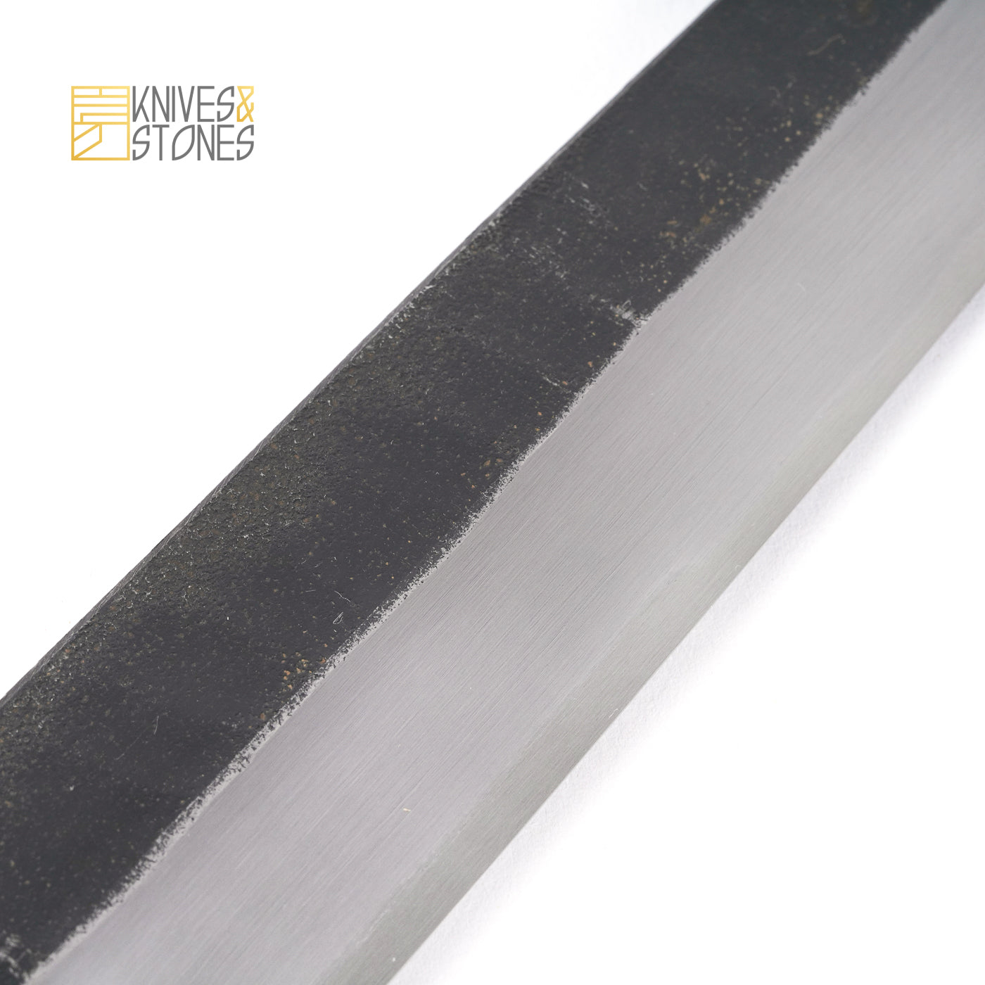 The Hatsukokoro by Myojin signle bevel is a line of "practical single bevel" knives produced by Myojin Riki Seisakusho and comisioned by Hatsukokoro. If you are not familiar with Myojin is a father and son knife workshop based in Tosa prefecture, in the island of Shikoku. Father Tateo, is specialised in single bevel knife sharpening, whereas son Naohito Myojin specialises in double bevel knife sharpening, and Toru Tamura is their primary blacksmith. As a sidenote, Toru Tamura and Naohito Myojin are the makers of the Tetsujin brand which is distributed by Konosuke and a few other knife houses.