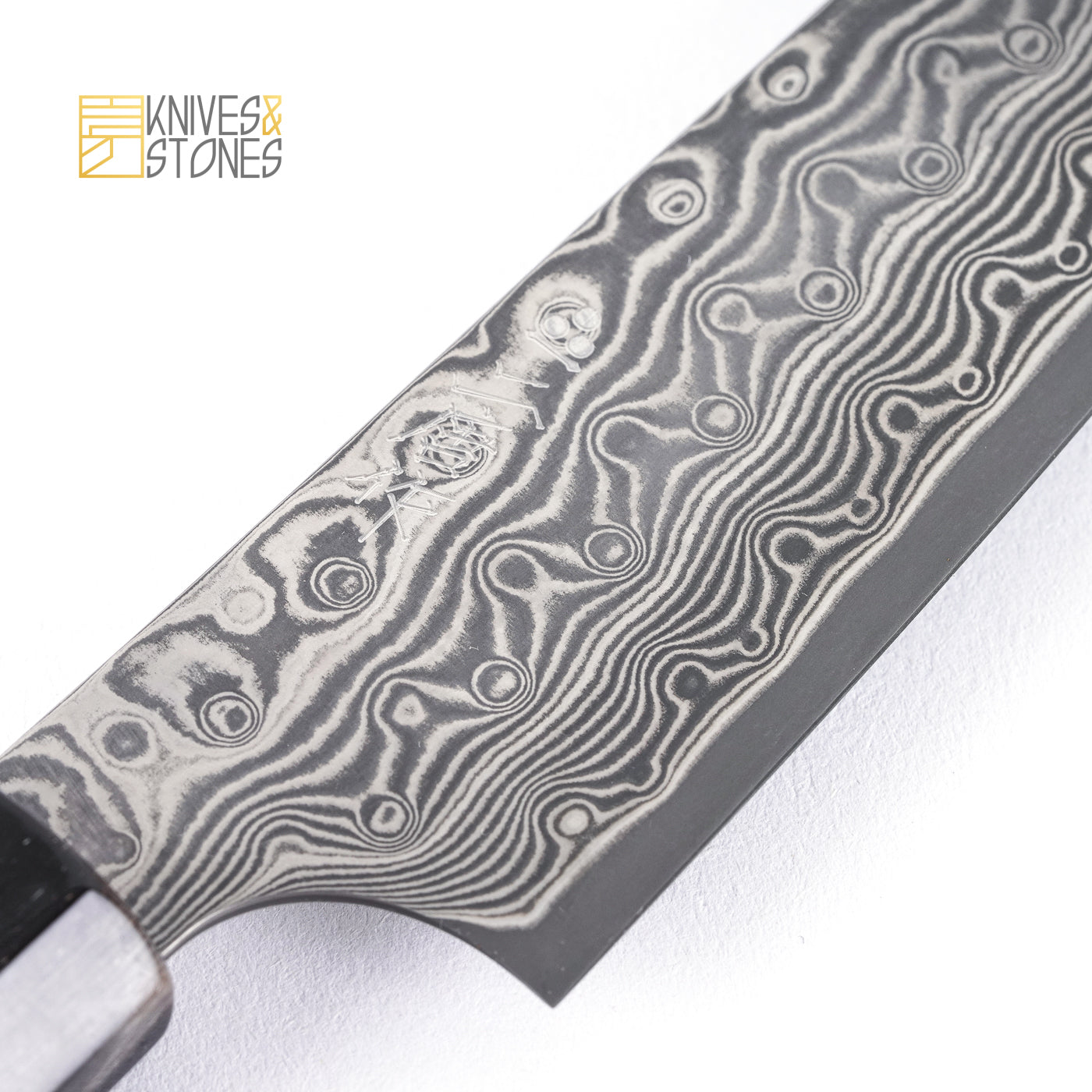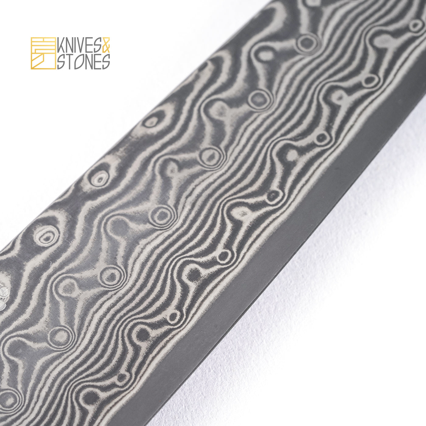 Introduced in late 2021, Nigara SG2 Anmon line features the state-of-the-art Super Gold 2 powdered steel with excellent edge retention, toughness and extreme sharpness, along with their signature Anmon (ringdrop damascus) pattern.