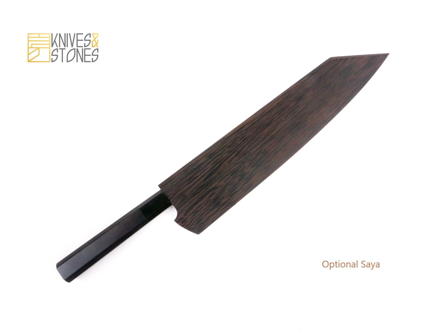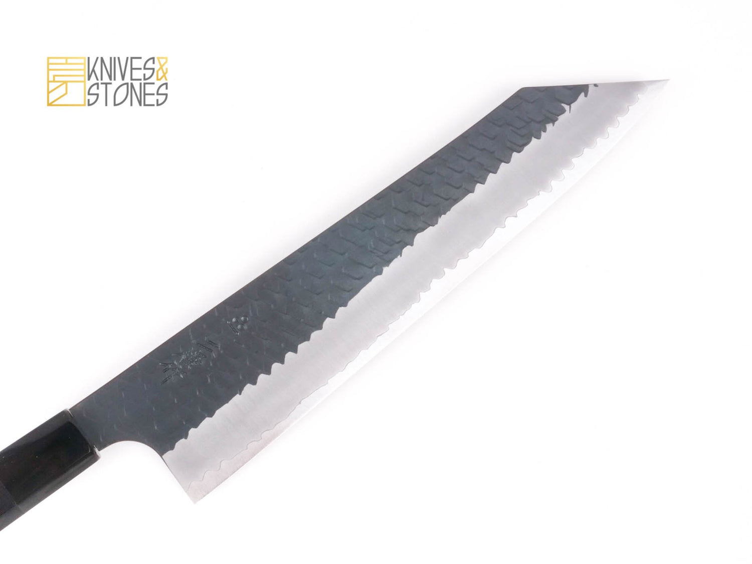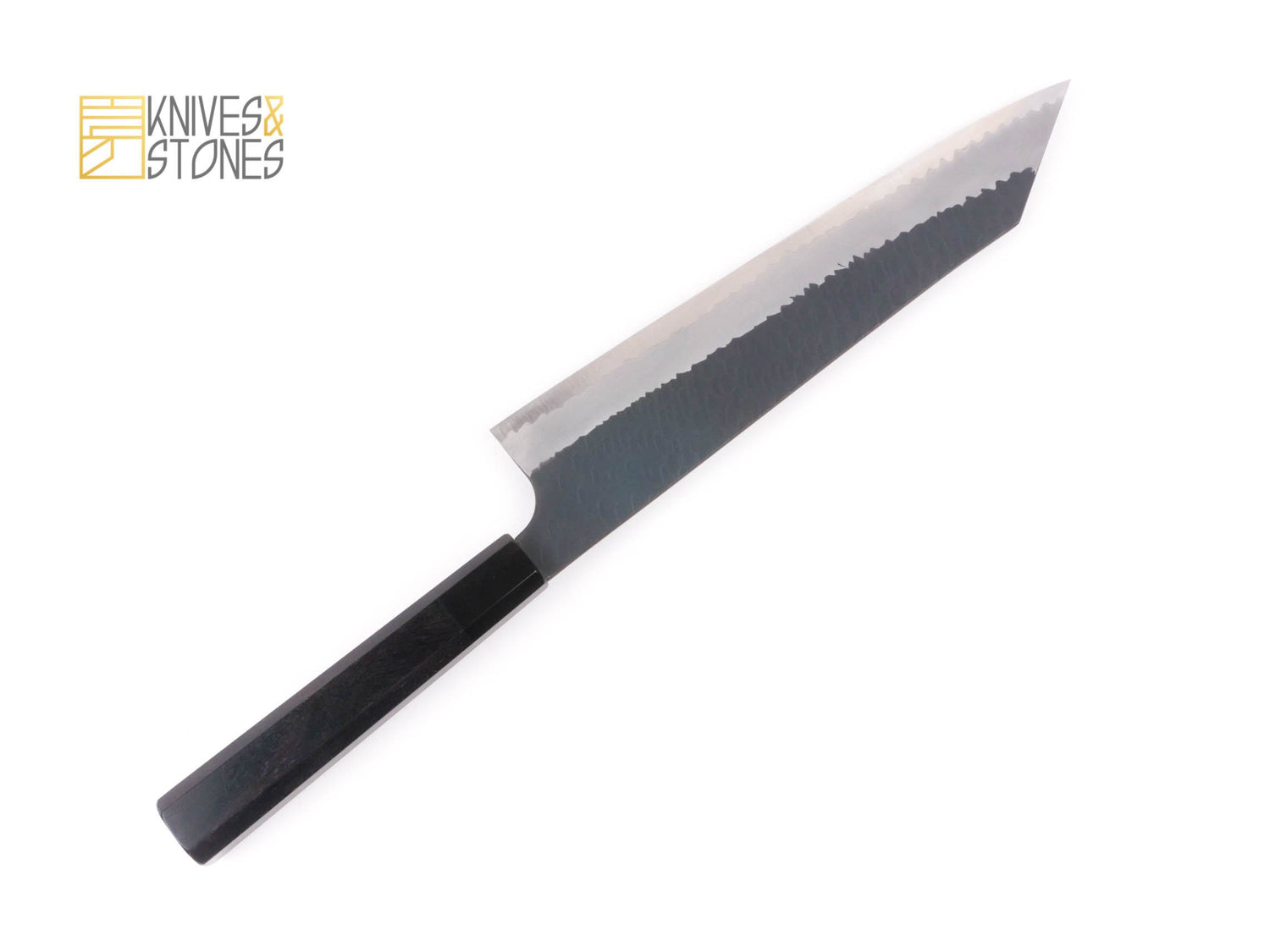 Nigara SG2 Kurouchi Tsuchime K-tip Gyuto 210/240/270mm, with K&S Ebony Handle - 210 mm is backordered and will ship as soon as it is back in stock.