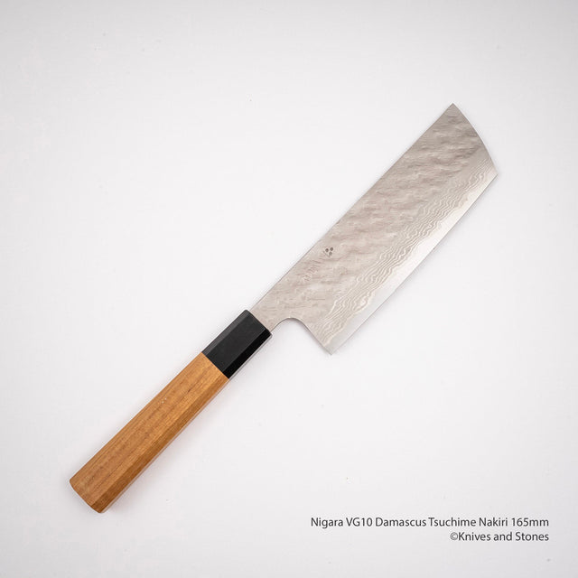 Nigara VG10 Damascus Tsuchime Nakiri 165mm