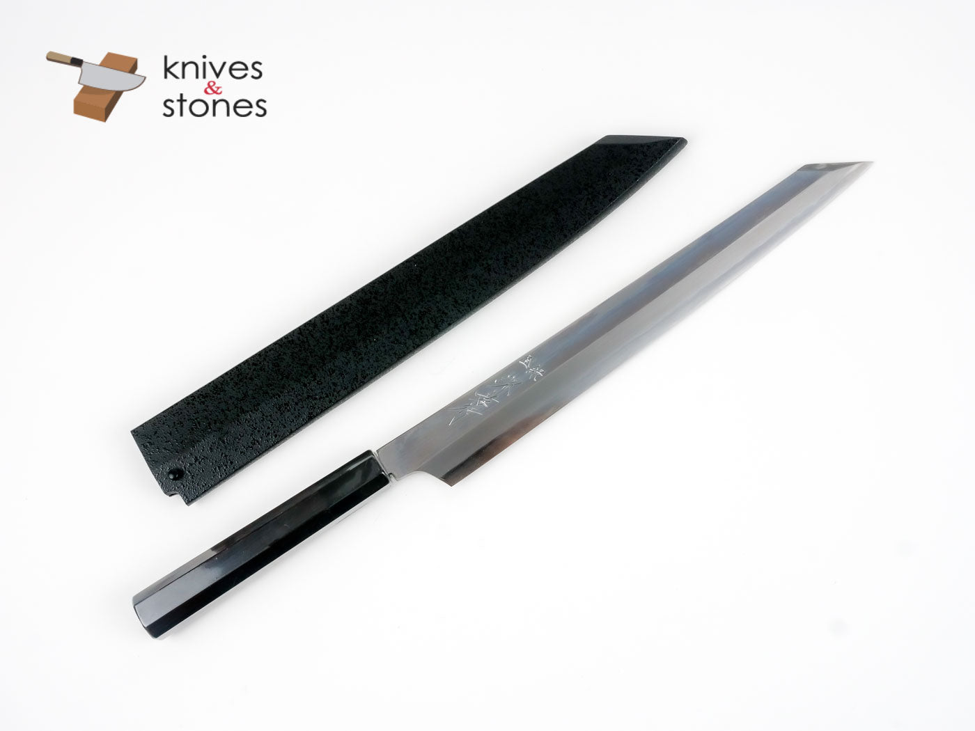 Hienn (飛燕 the Flying Swallow), , blue 2 yanagiba line forged by the 3rd generation of the Doi family: master Itsuo Doi. With mirror polished front side.