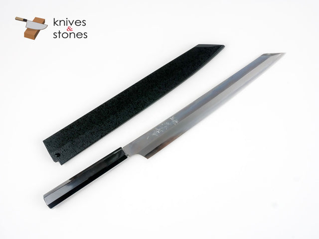 Sakai Takayuki Hienn Kiritsuke Yanagiba by Itsuo Doi Blue 2 - 300mm is backordered and will ship as soon as it is back in stock.