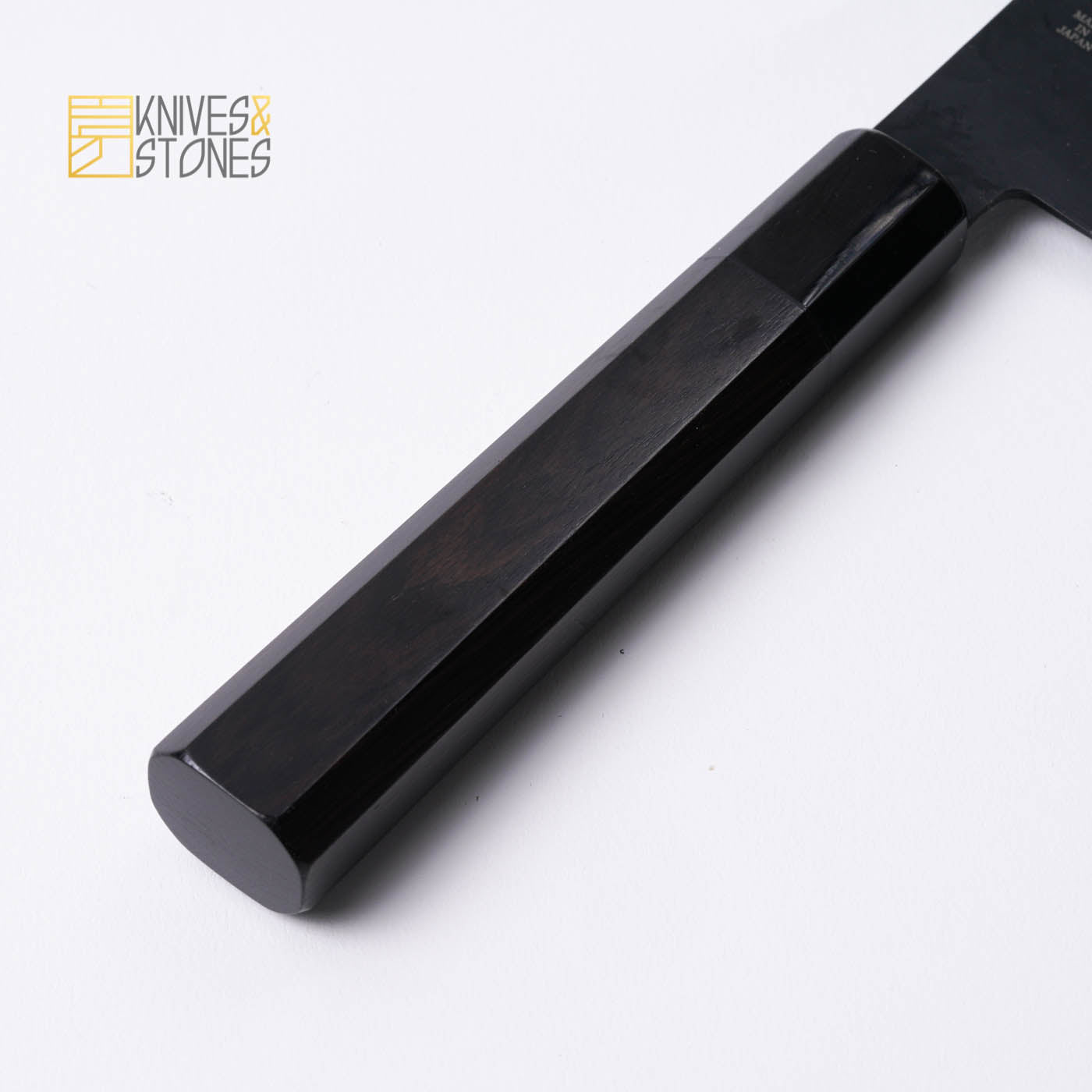 The all new Takayuki Kurokage line, state-of-the-art VG10 steel with Teflon coating. The unique Teflon coatings gives an superb food release while the high carbon VG10 provides an tough and long listing edge. Comes with a K&S octagonal ebony handle.