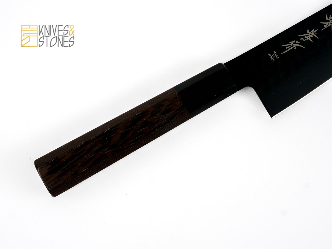 The all new Takayuki Kurokage line, state-of-the-art VG10 steel with Teflon coating. The unique Teflon coatings gives an superb food release while the high carbon VG10 provides an tough and long listing edge. Comes with a Takayuki exclusive octagonal wenge handle.