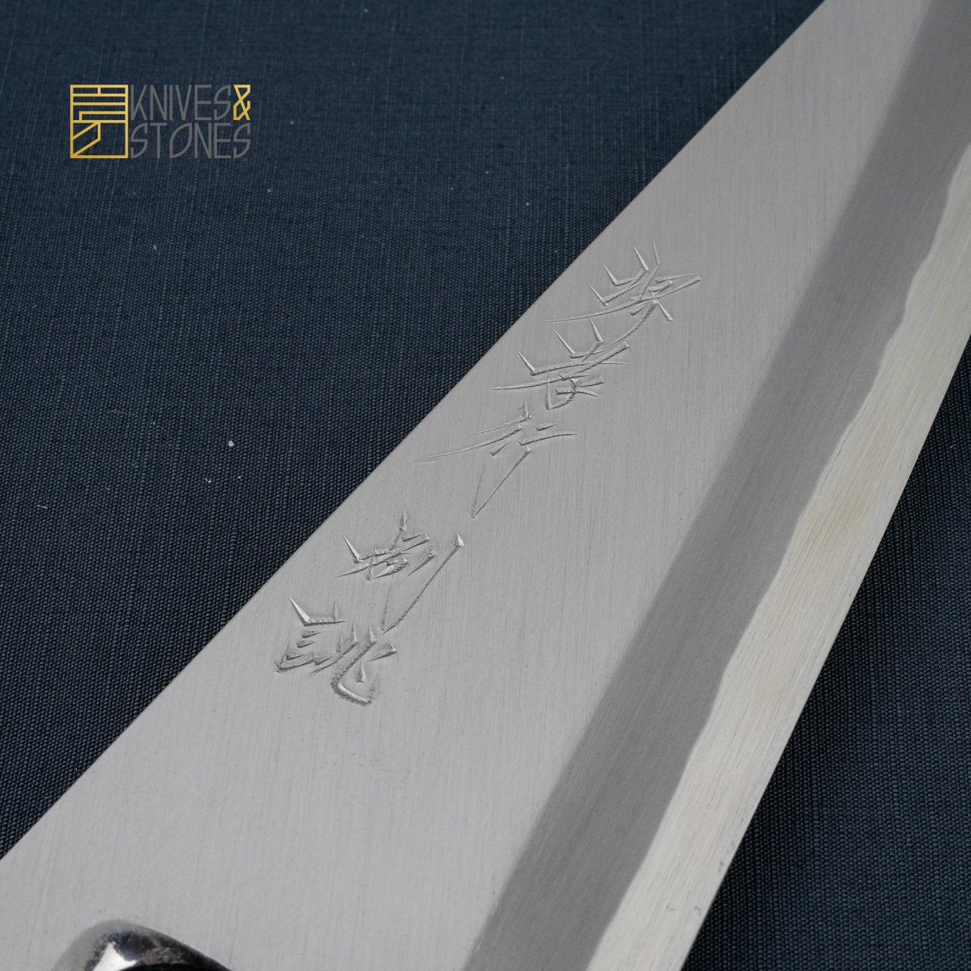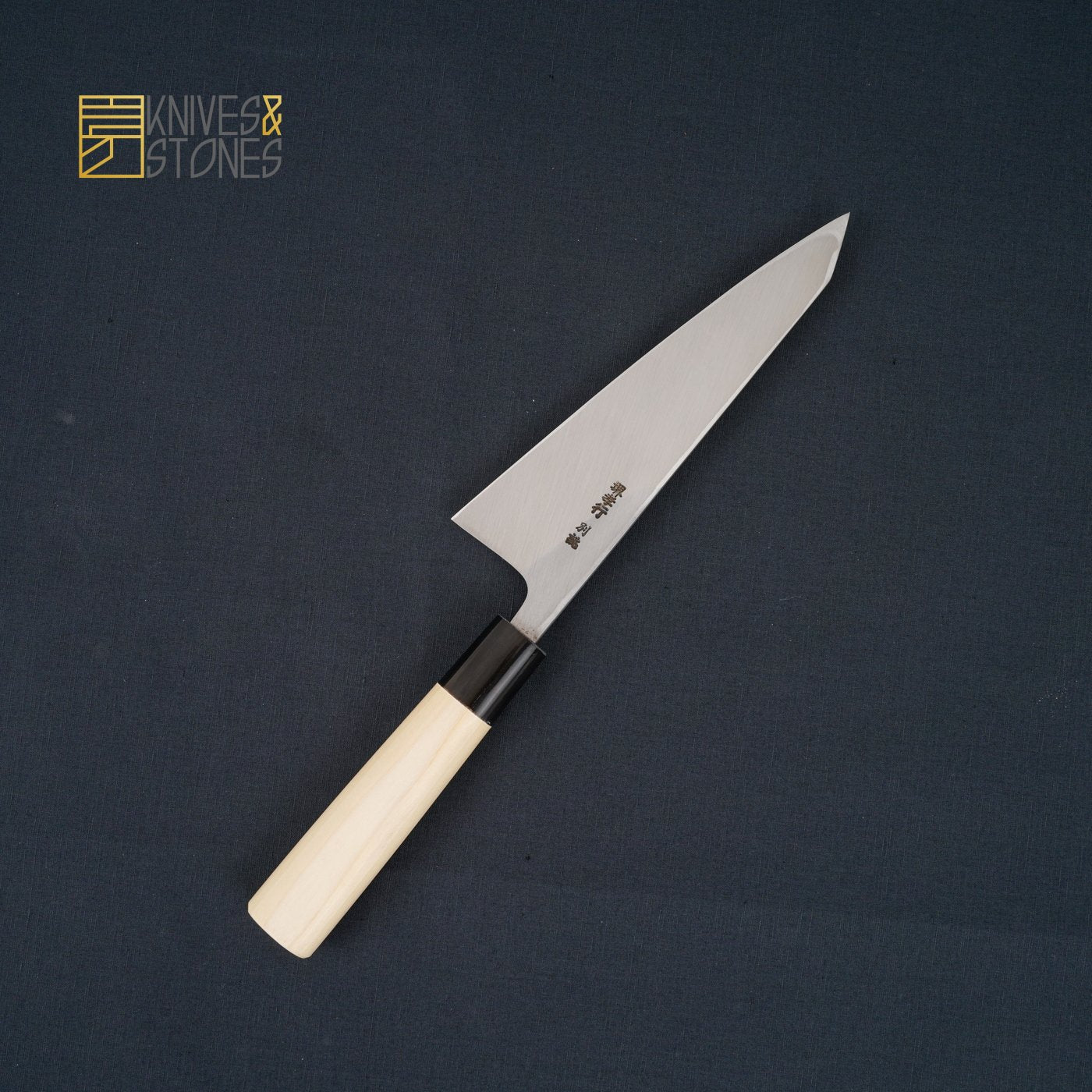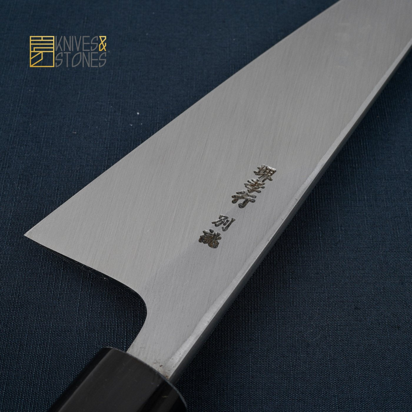 The Tokujou line is the best-selling Japanese knife for professionals, using white-2 steel from Yasuki. The Tokujou line is hand forged by Master Kenji Togashi, who received the Sakai Traditional Craftsman award in 1996. He is considered as one of the best bladesmiths among his peers. Great fit and finish.