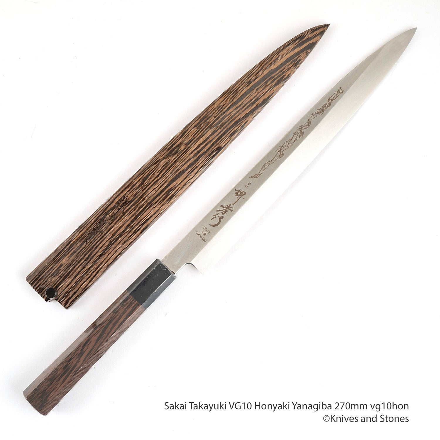 Sakai Takayuki VG10 Honyaki Yanagiba 270mm with Wenge Handle and Saya is backordered and will ship as soon as it is back in stock.