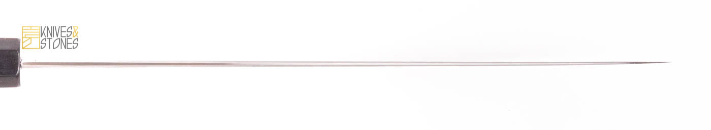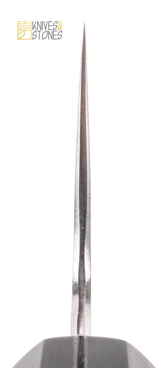 With Konosuke Fujiyama FM as his most famous works, Tanaka-san is well known for his excellent heat treatment and his forging skills. Knives made by him are featured with a wavier cladding line between the hagane and jigane, and often has more core steel exposed.