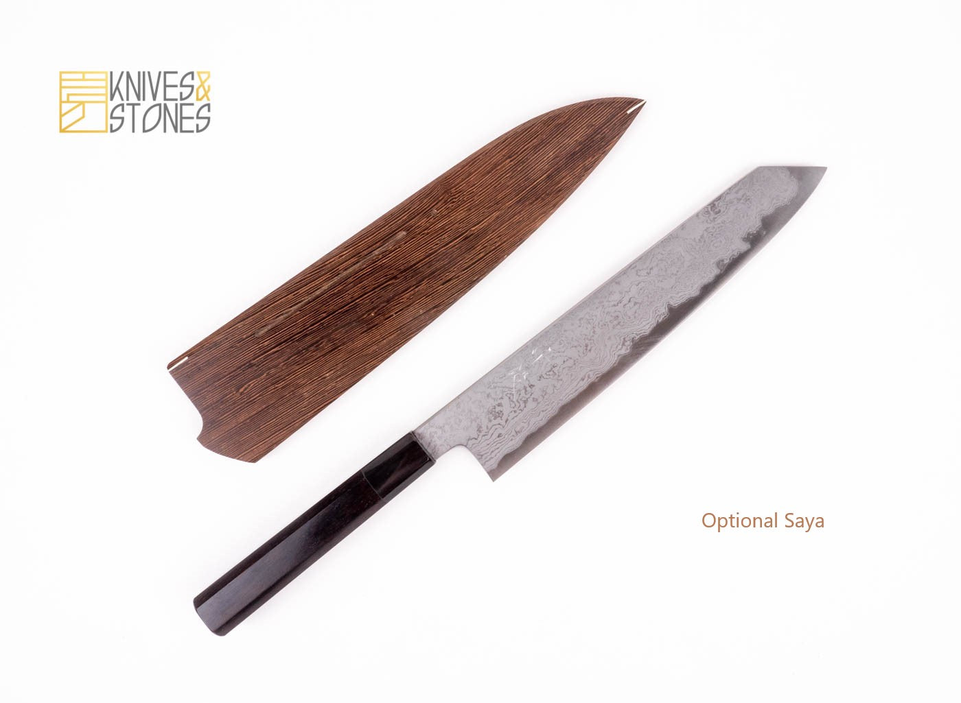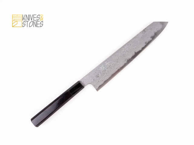 Sentan Blue 1 Damascus Kiritsuke 225mm with K&S Ebony handle, by Yoshikazu Tanaka - 195mm is backordered and will ship as soon as it is back in stock.