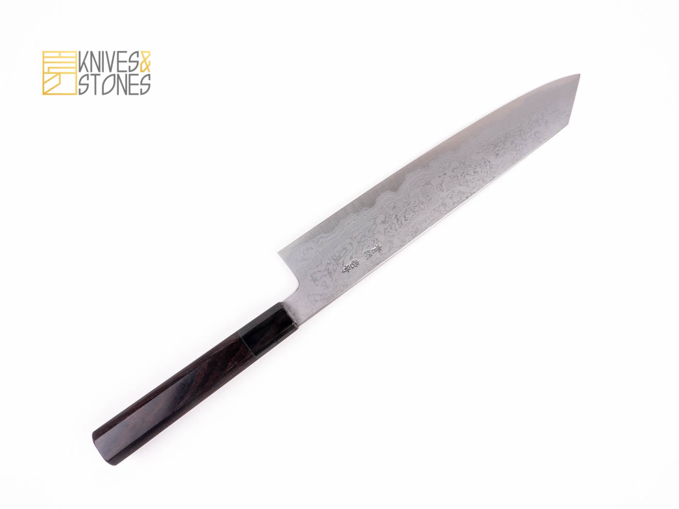 Sentan Blue 1 Damascus Kiritsuke 225mm with K&S Ebony handle, by Yoshikazu Tanaka