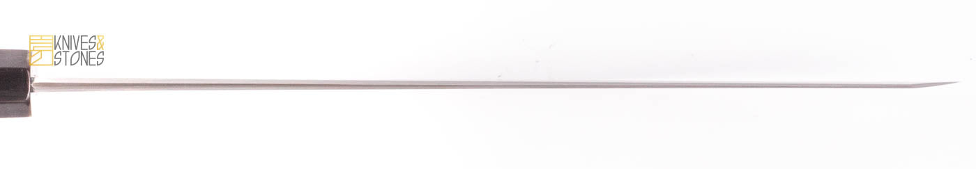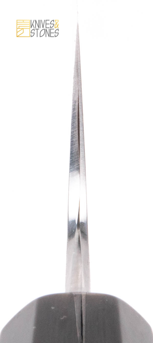 With Konosuke Fujiyama FM as his most famous works, Tanaka-san is well known for his excellent heat treatment and his forging skills. Knives made by him are featured with a wavier cladding line between the hagane and jigane, and often has more core steel exposed.