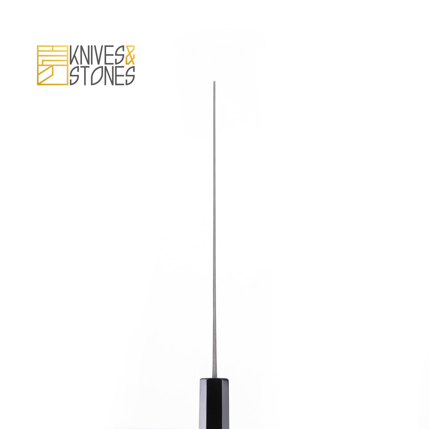 The wear-resistance property of PM steel can sometimes be a double-sword for kitchen knives. That is, if the blade is made of mono-steel construction (non-cladded, usually done by stock removal), the excellent wear-resistance property means the bevel is notoriously hard to thin and refinish (generally speaking all the monosteel knives are more or less like so, but PM steel is that much harder).