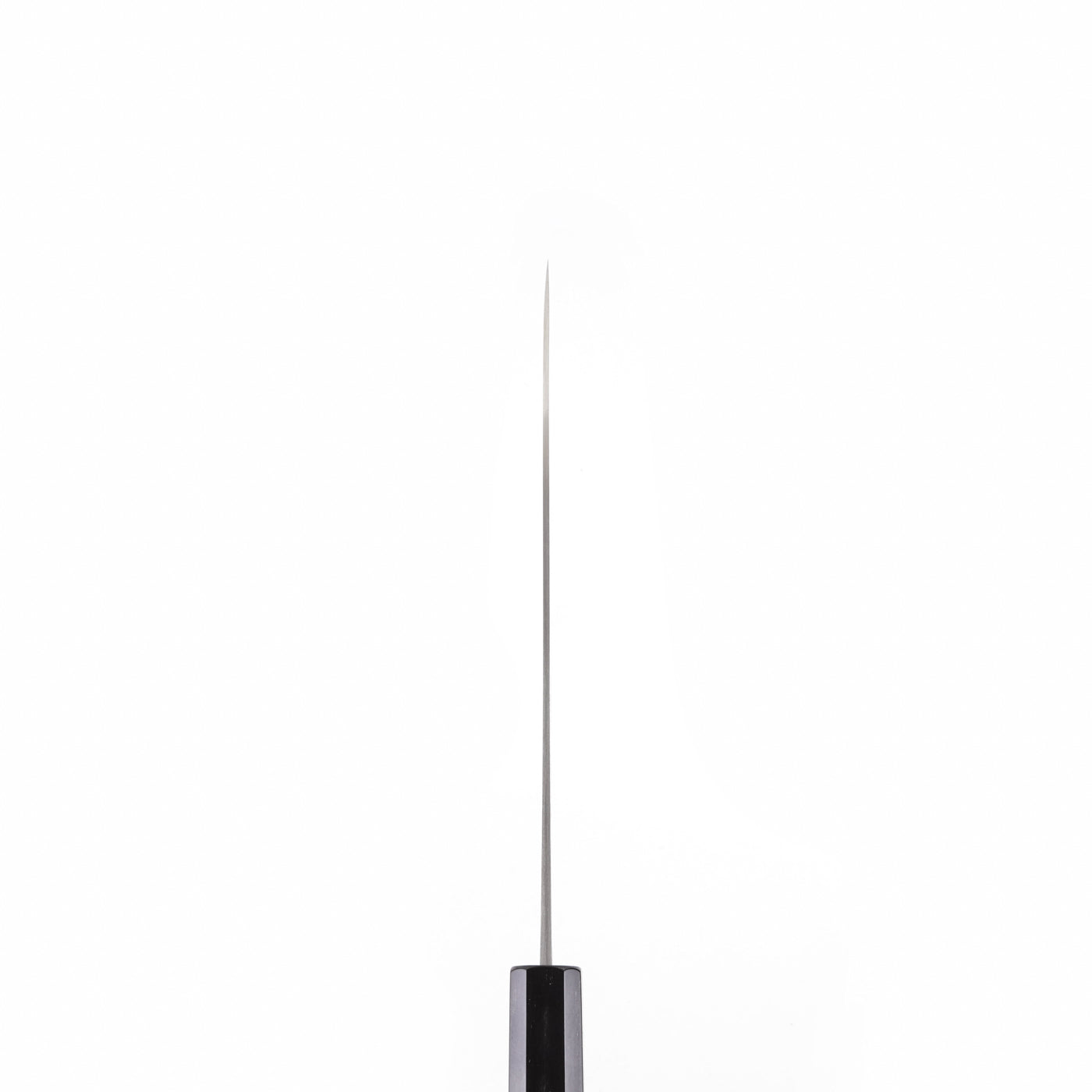 Shiro Kamo, while little known overseas, is a well regarded knife smith in Japan. He was awarded the prestigious “Dento-kogeshi” (Master of Traditional Crafts) at a very young age (total of about 10 persons are awarded in Echizen area, likes of Takeshi Saji and Katsushige Anryu). He is also the president of the Takefu Knife Village Cooperative (http://www.takefu-knifevillage.com/company/) that is the reason I say while not known by many of us outside, Kamo-san is certainly a highly regarded figure in the kitchen knife industry. His knives have exceptional profile and grind, and the heat treatment of R2 steel is so impressive that you are assured to be getting a damn good knife. I just can’t afford to not offer his work to you :D