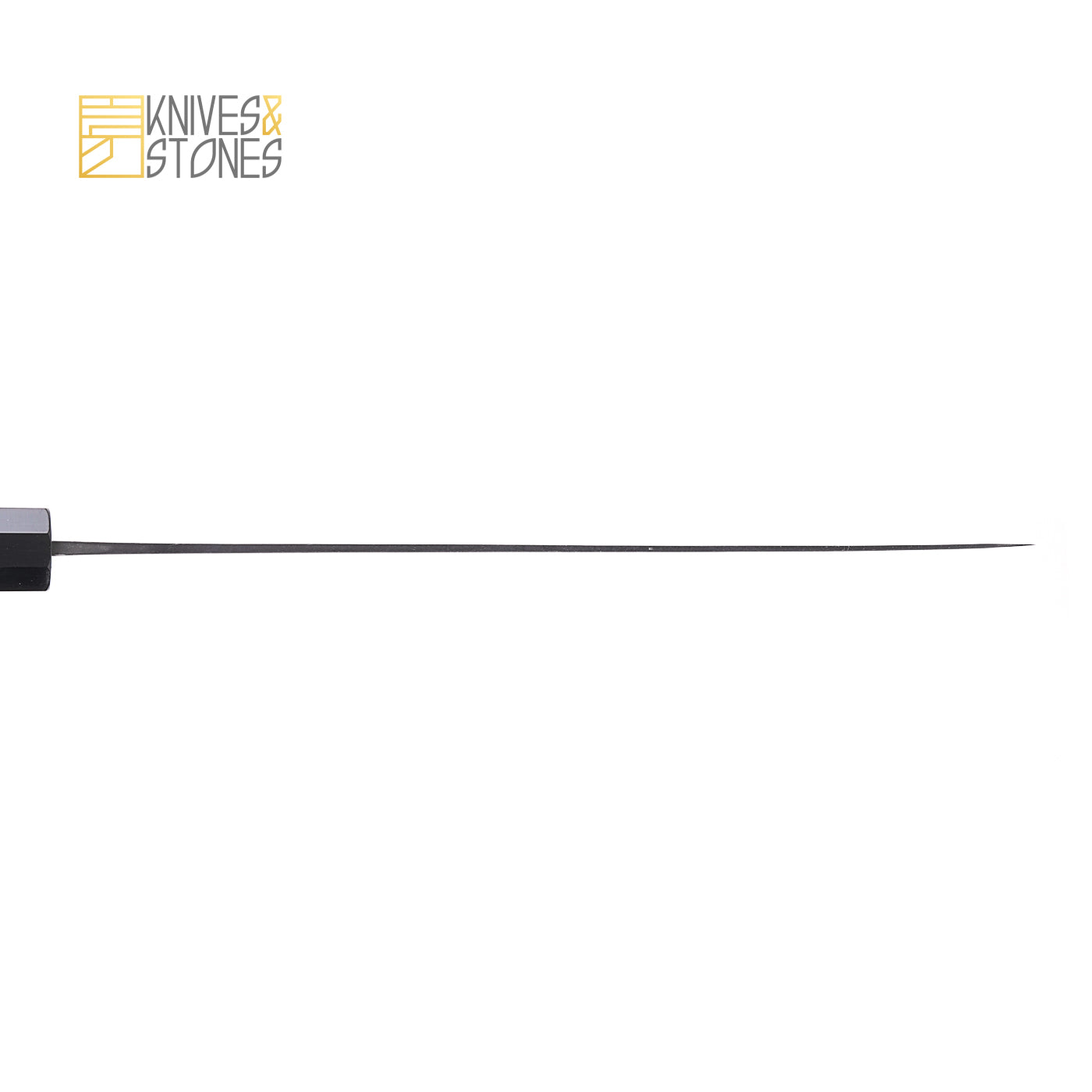 Many of you asked for a carbon variant from Kamo-san and mentioned to me that his Kurouchi Aogami Super (Blue Super, AS) is an exceptional cutter at a great price. So I decided to offer exactly what you after: Shiro Kamo Kurouchi Aogami Super line, comes with K&S octagonal teak handles.