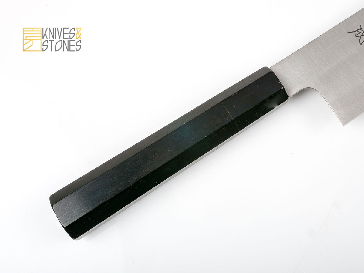 The Aogami Super line is arguably one of the most underrated offering from Sukenari. The reason? While staying at a very affordable price, the Sukenari Aogami Super is forged and water quenched to an extremely high hardness of HRC 65 (previously, the damascus version was even higher, more than HRC 66). This means a super high hardness, extreme sharpness and edge retention, but it also comes with an extremely high failure rate.