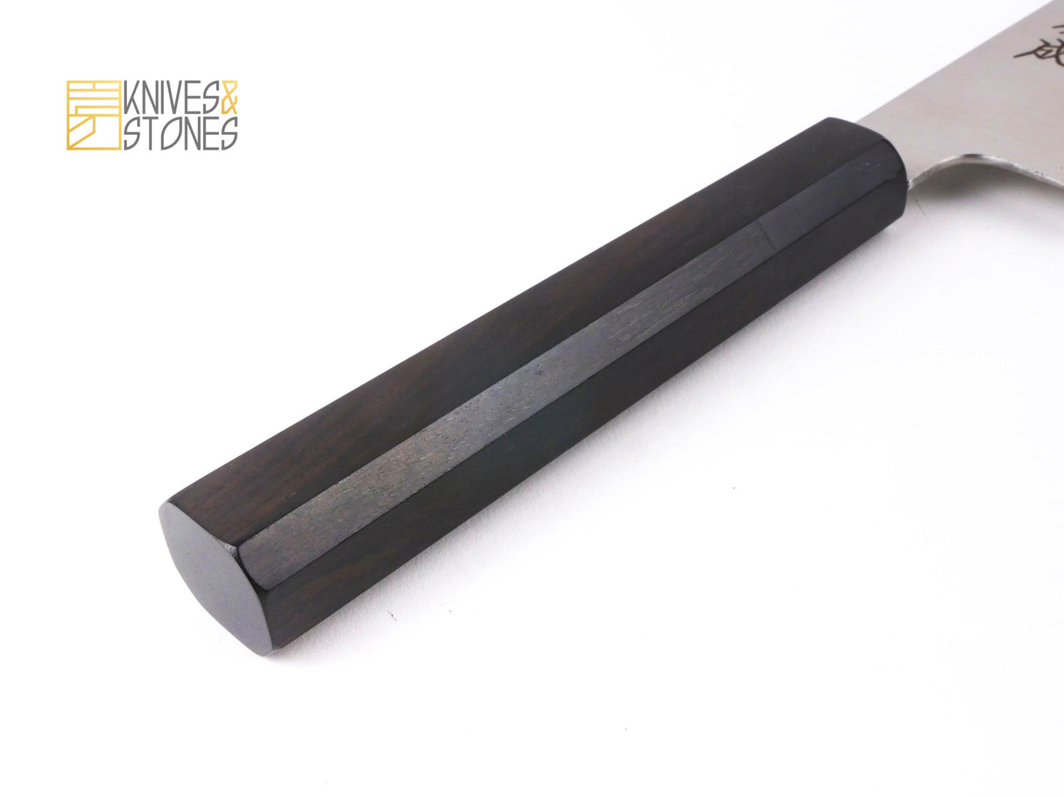 The Aogami Super line is arguably one of the most underrated offering from Sukenari. The reason? While staying at a very affordable price, the Sukenari Aogami Super is forged and water quenched to an extremely high hardness of HRC 65 (previously, the damascus version was even higher, more than HRC 66). This means a super high hardness, extreme sharpness and edge retention, but it also comes with an extremely high failure rate.