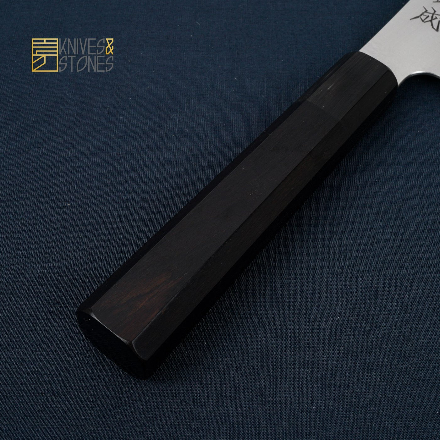 The Sukenari Ginsan line features the stat-of-the-art cutlery steel: Ginsanko (銀三鋼) by Hitachi. Apart from being stainless, the Ginsanko is said to closely resembles the property of White 2 steel, making it one of the favorite stainless steel among the professional chefs in Japan and is extensively used by Sakai craftsmen to forge single bevel knives.