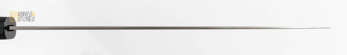 The Knives and Stones Sukenari ZDP-189 line is truely a beauty by the look, beast by the performance. The core steel is the most advanced powdered steel that Hitachi offers: the ZDP-189, reaching an unmatched hardness of HRC 65 to 67. This is acthieved by over 3% of Carbon content in the steel (White 2 has about 1%, Blue 1 has about 1.25%, that tells you something) meaning the Sukenari ZDP-189 will offer insance edge retention and sharpness. Yet it is a stainless steel becasue of the added Chromium. Overall, the ZDP-189 has very similar composition to the Cowry-X steel from Daido.