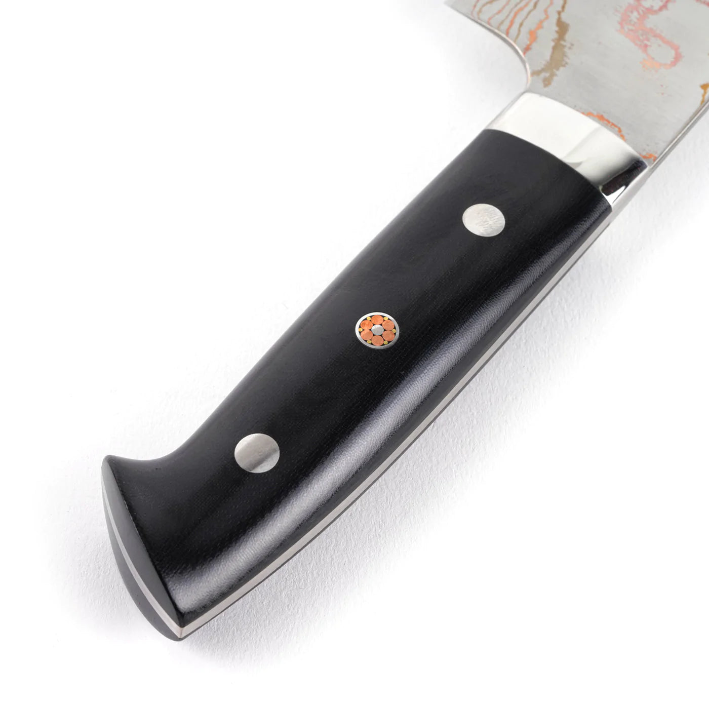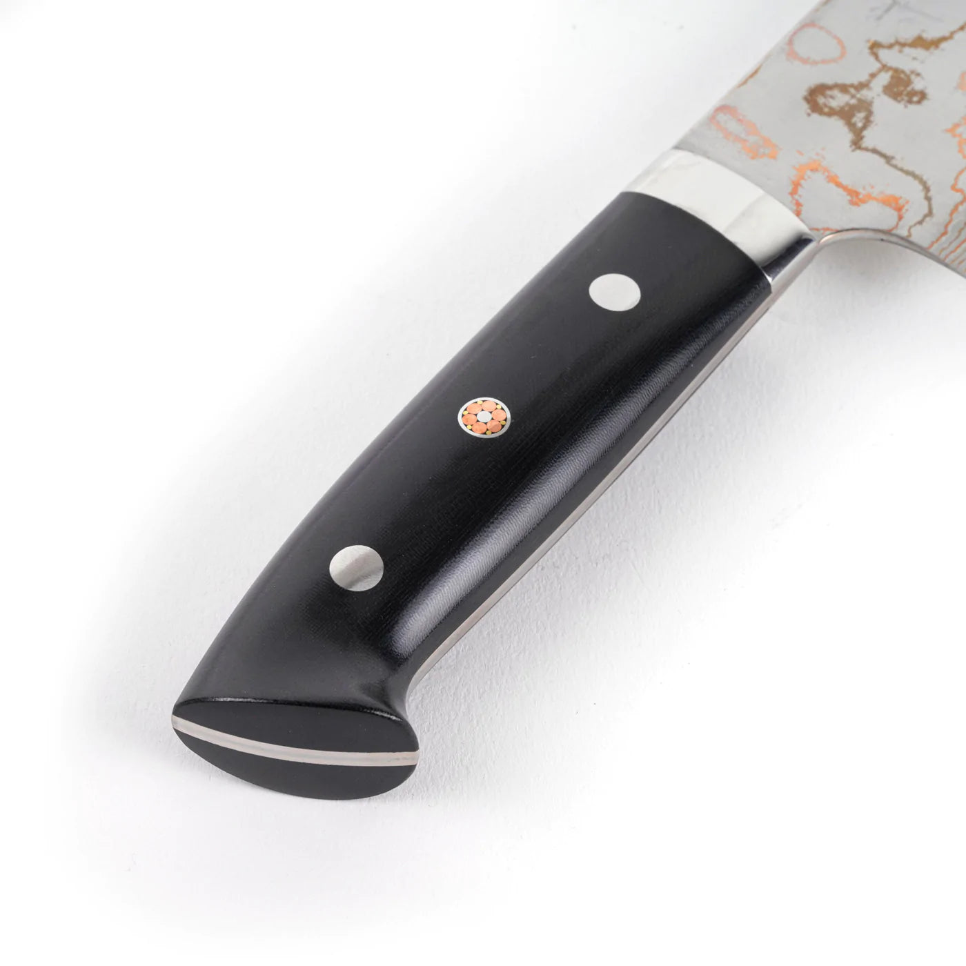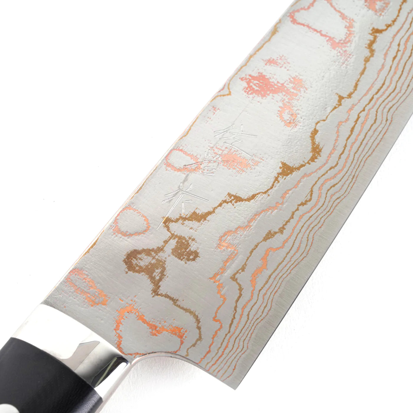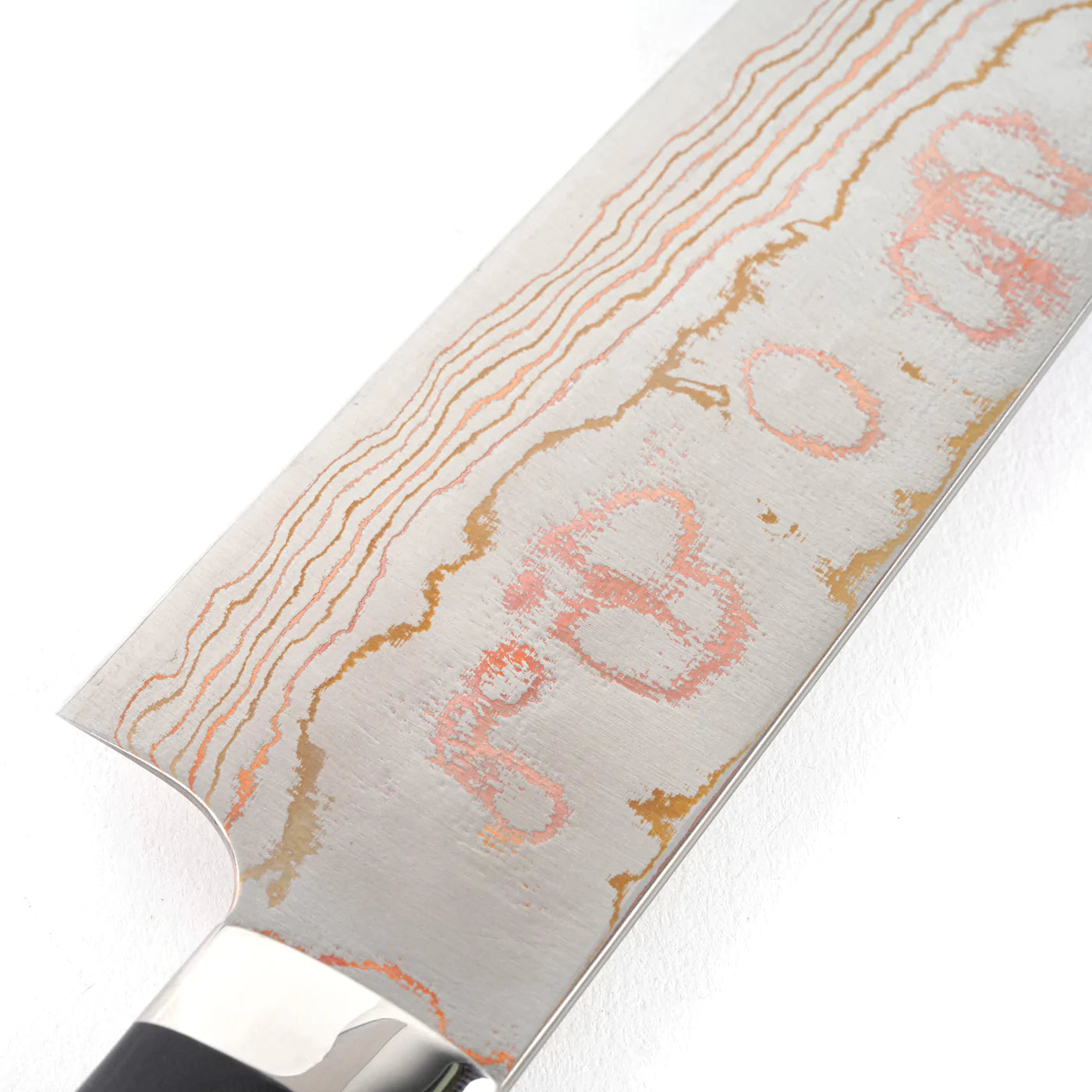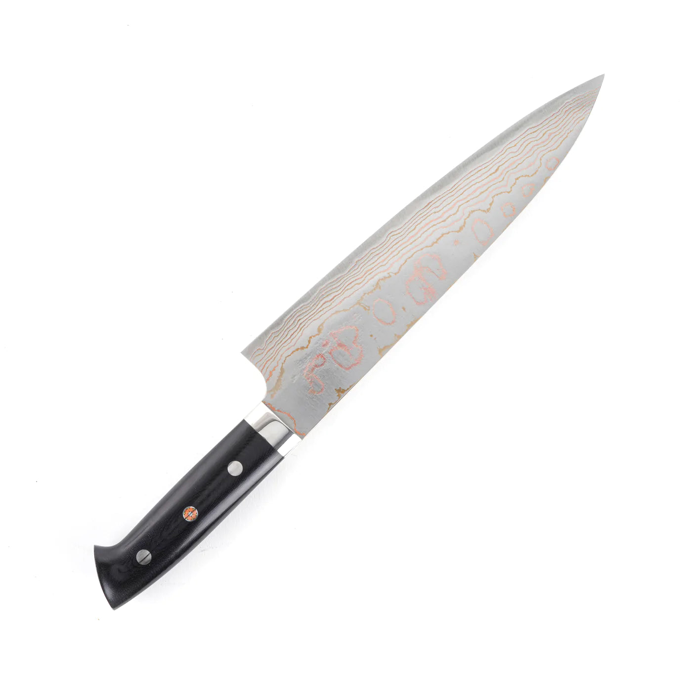 Takeshi Saji Rainbow Damascus Blue 2 Gyuto 210mm with Black Micarta Handle