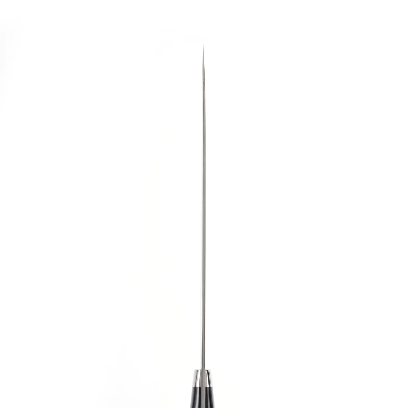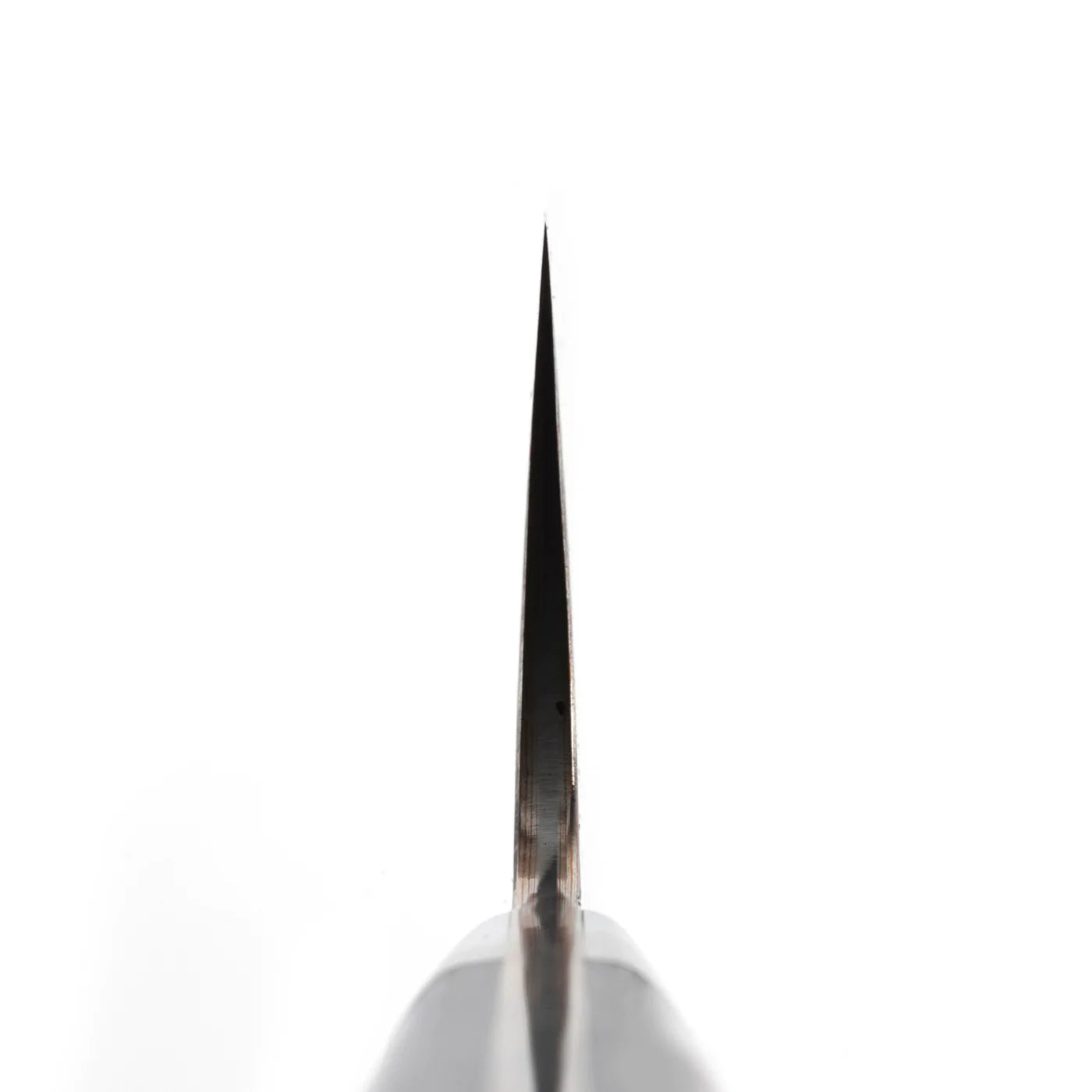 Takeshi Saji, who is famous for his exceptional work of hunting knives is now also forging some of the best artisan kitchen knives as well. Obtained the highest award of Dento-Kougeishi in 1994, he is the leading bladesmith in the Echizen district. His work is highly artistic, utilizing some of the most exotic traditional skills and materials to perfect his work. For example, he is famous for using the R2/SG2 powder metallurgy steel to forge his high-end blades, which can reach a mighty HRC 64; for handles, he uses rare natural materials like stag bone, and desert ironwood; he also use the traditional Makie Urushi (one of the most exotic traditional Japanese lacquer painting technique, see here) in some of his limited runs.