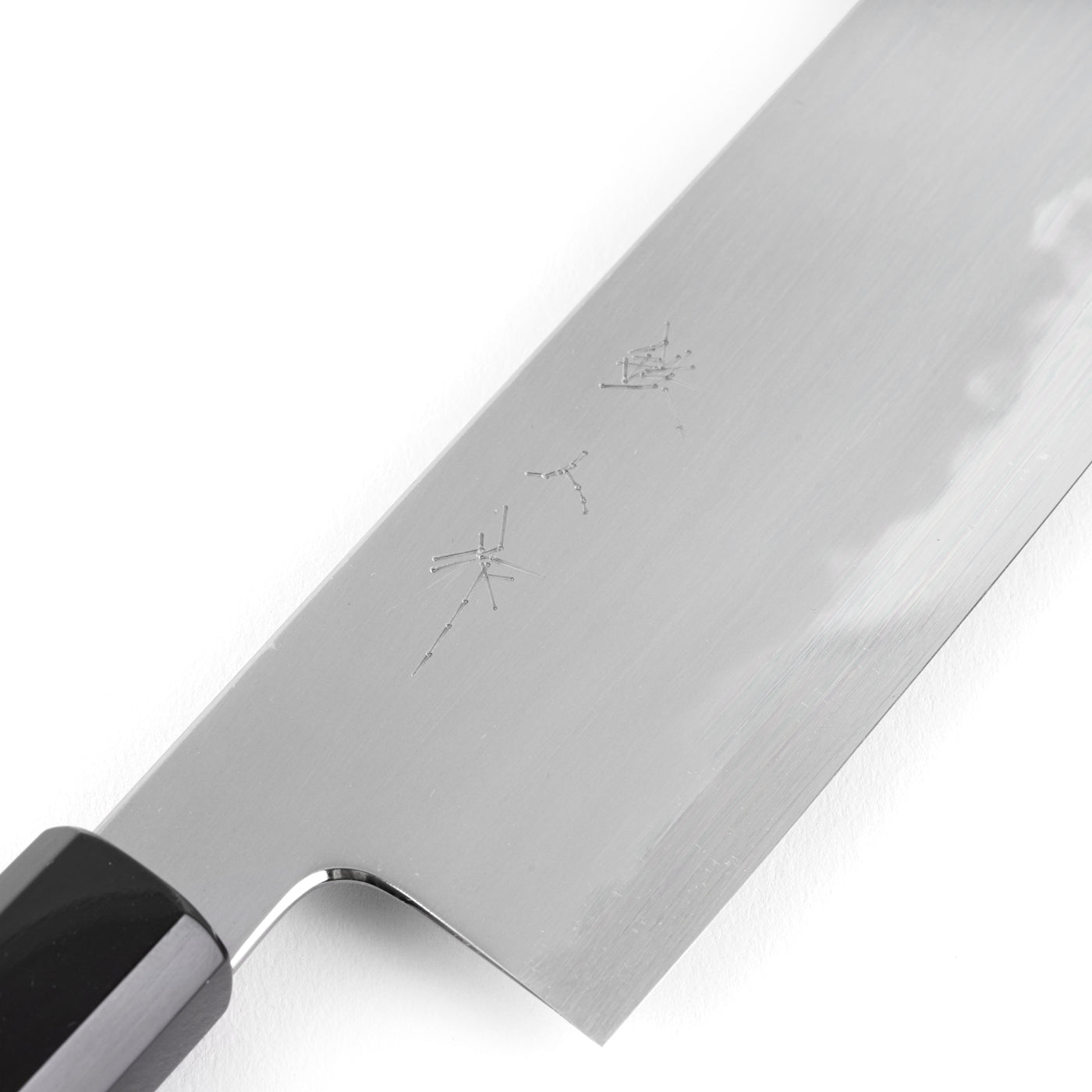 I think 'refined' is the best word to describe Naohito's work: while featuring proven cutting performance, his knife has some of the best finishes out there. The spine is nicely chamfered, choil is well polished. By engraving his name Naohito on to the knivves, you can tell that he must be really proud of his work, and I trust you will enjoy his knife as well.