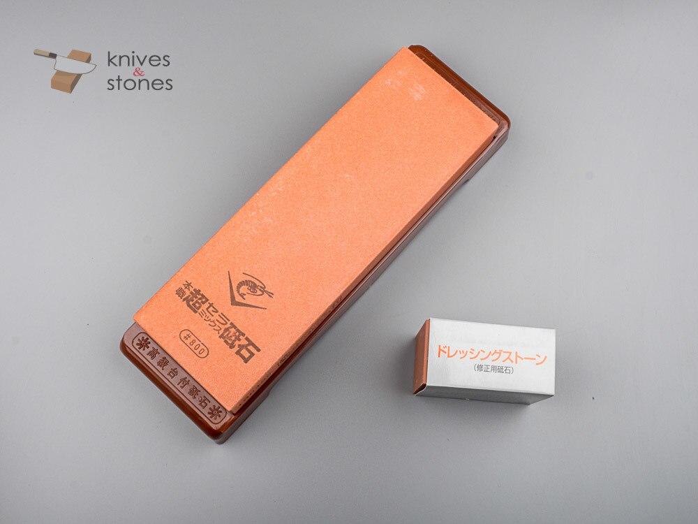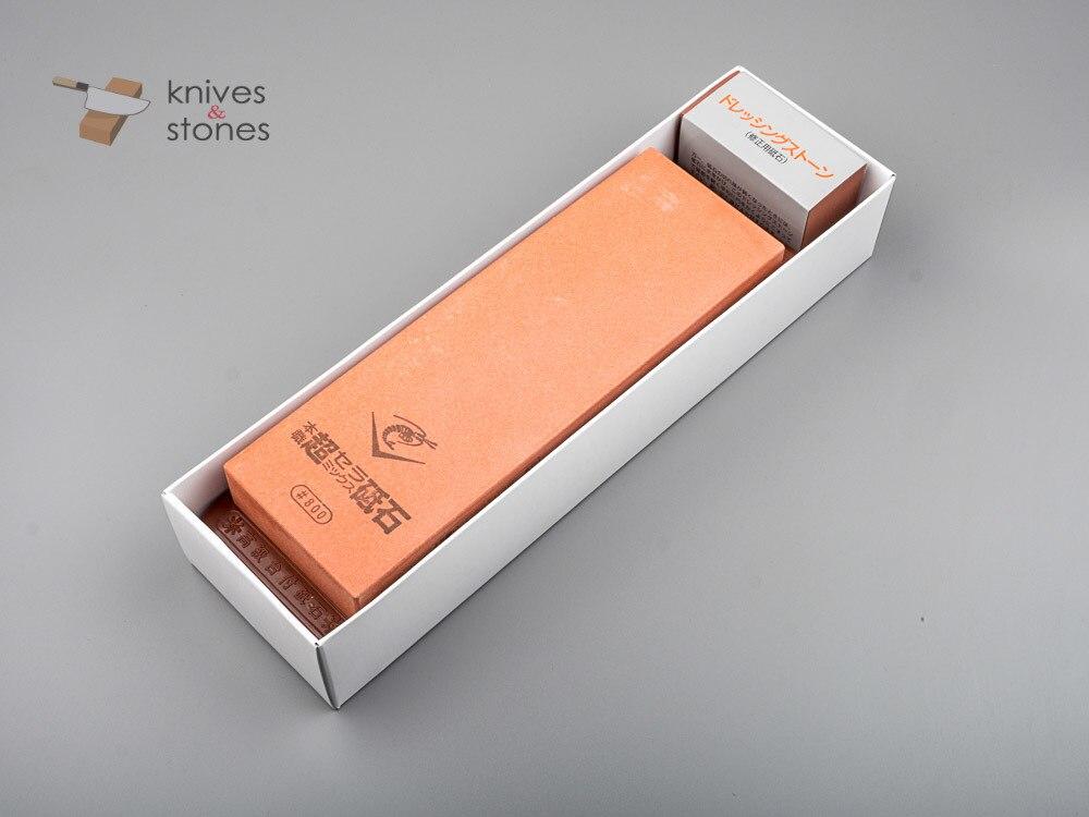 The Chosera (Cho: Super; Sera: Ceramic) stones are the best ceramic stones offered by Naniwa. These stones are designed for professionals who put the highest daily demands on their knives. Overall, these stones are best for those who don't have a lot of time to spend and need to quickly and cleanly sharpen their knives. Every Chosera sharpening stone is delivered with a special Nagura stone (67 x 49 x 25 mm) to put a fine sharpening paste on the surface of the Chosera stones during use. This 400 grit is excellent for establishing a new bevel angle or removing chips from the blade. Naniwa claims these are splash-and-go stones, but users say that soaking for a few minutes can further improve the sharpening quality.