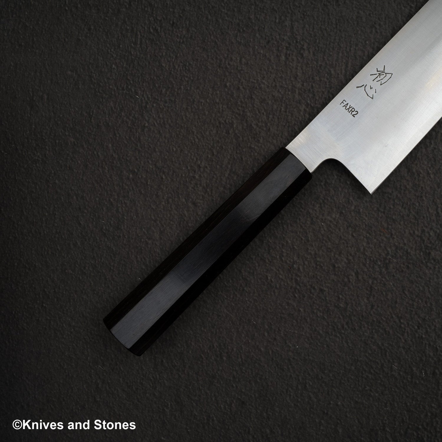Enhance your culinary skills with the Hatsukokoro FAXR2 Migaki K-Tip Gyuto, a Japanese kitchen knife perfect for both professional chefs and home cooks. Available at Knives and Stones, Sydney.