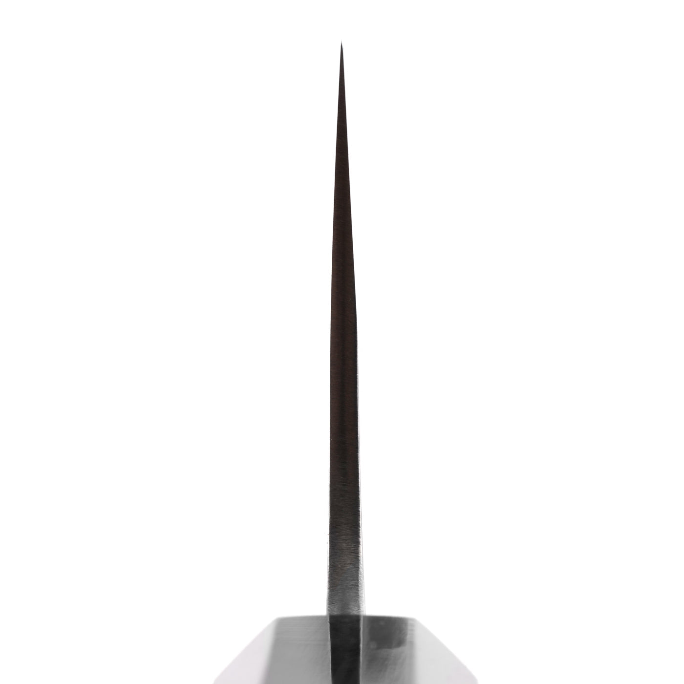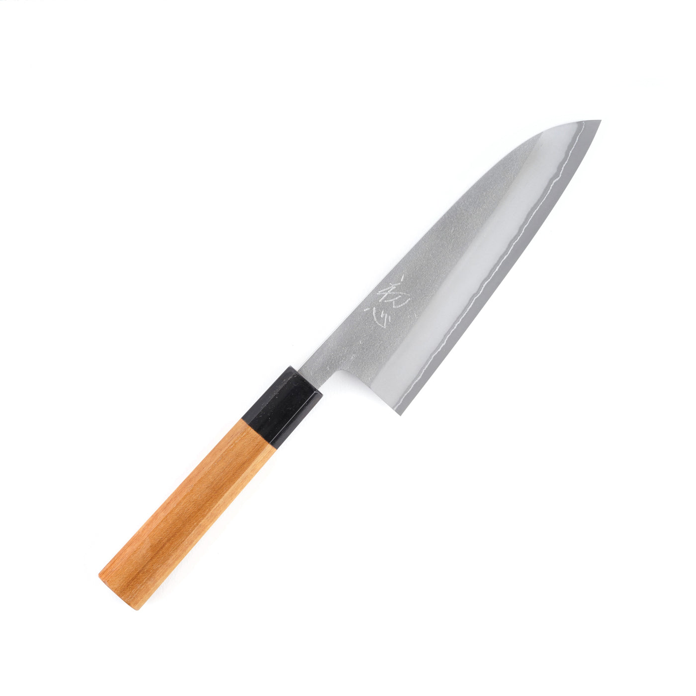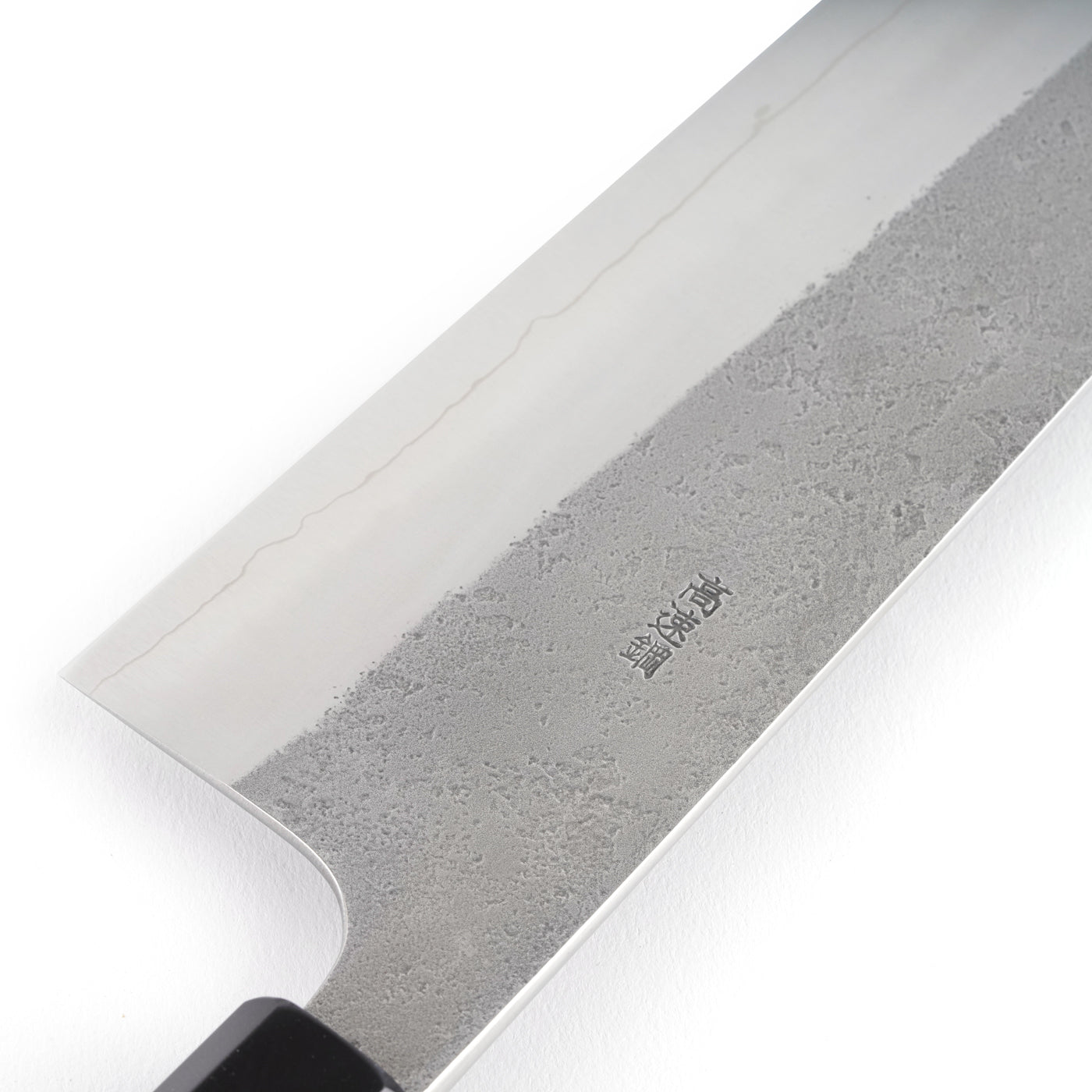 A rustic Nashiji finish coupled with a highly praised Sanjo region F&F. This knife has a very nice profile, large sweet spot, and feels very nimble in hand. SKD semi stainless core with stainless cladding ensure the highest cutting performance yet the stainless cladding means you will have little worry about the rust.